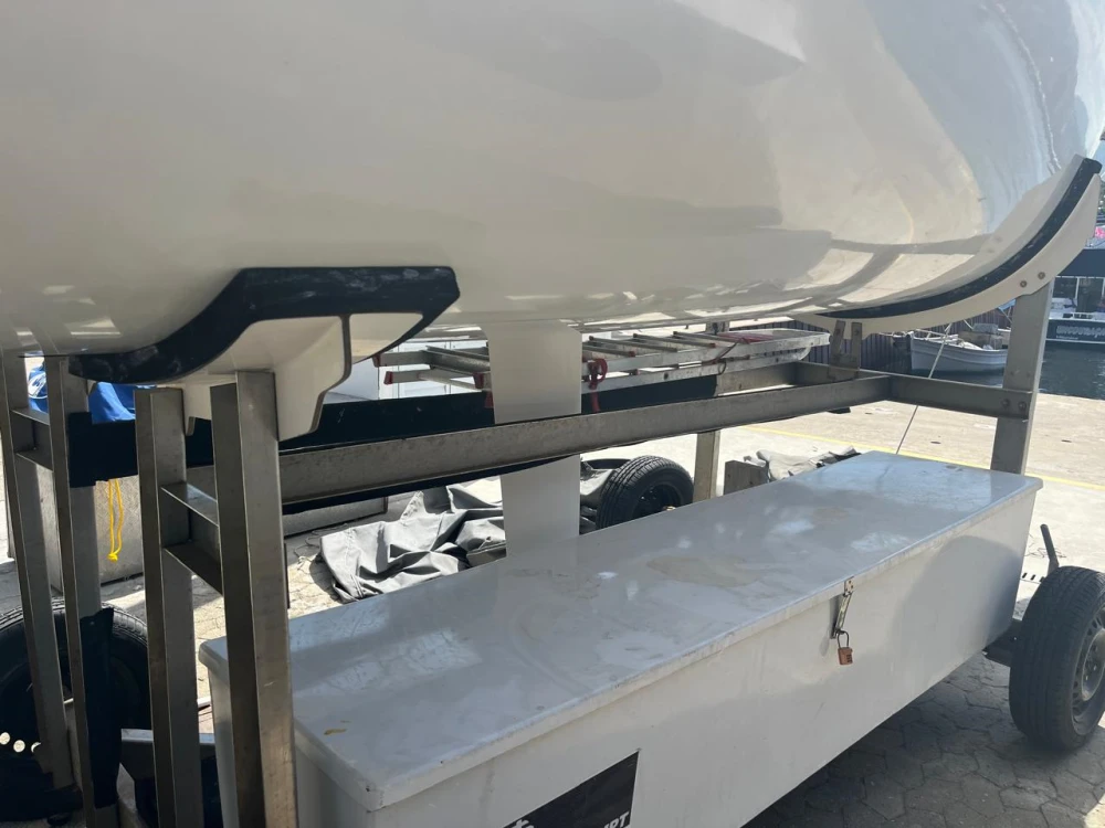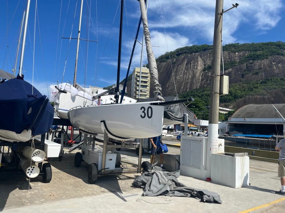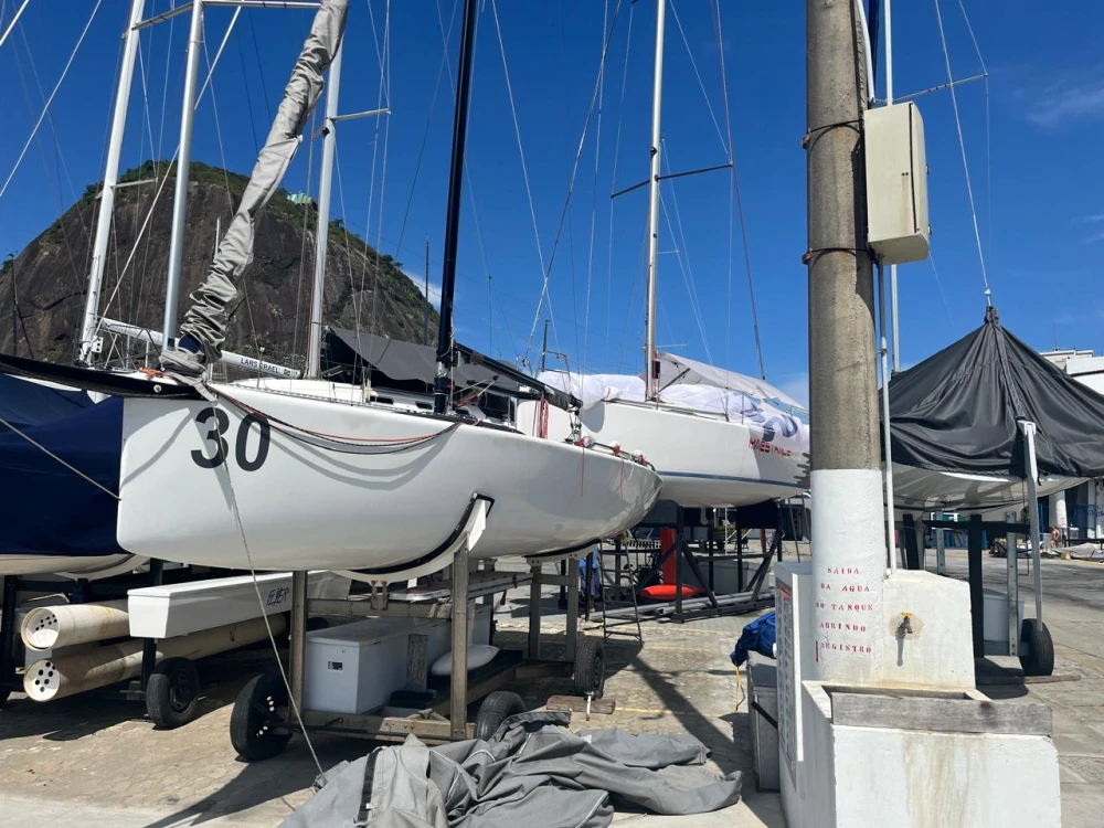Barco em excelente estado, pronto para disputar regatas, todos os equipamentos obrigatórios em ordem, certificado de medição valido, com quilha e leme atualizados, cabos e ferragens em ótimo estado, carreta de aço inox, capa de proteção nova, GPS Novasail, 2 jogos Grande e Buja para Regata (Quantum (21 e 22) Preta – North (22) Amarela), Balão (North 16), além de vários jogos de vela antigos Atualmente no Rio (ICRJ).