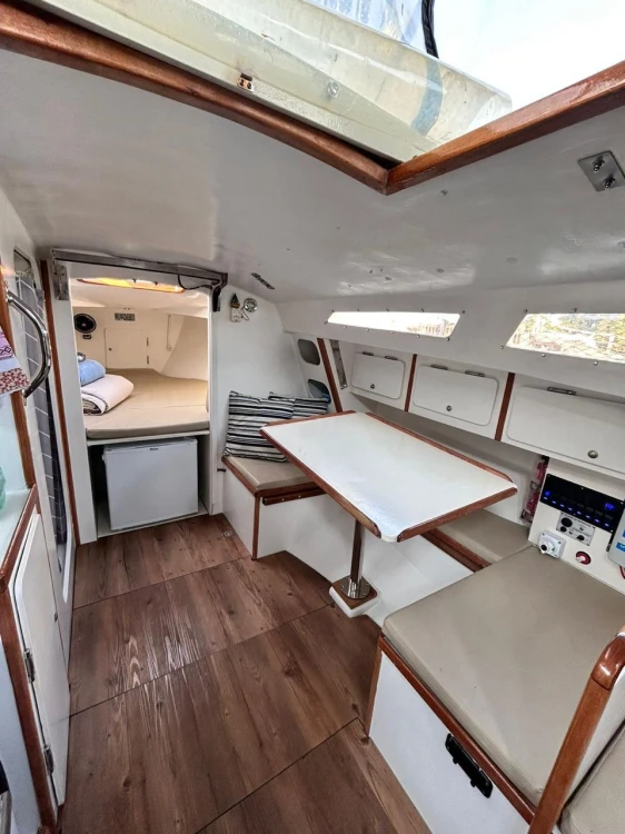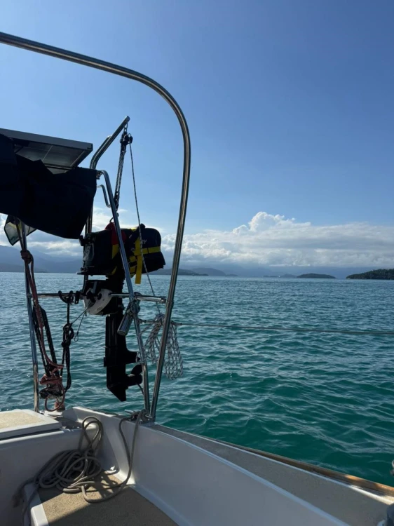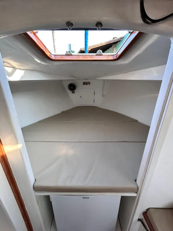 O Scorpio 26 é um veleiro de cruzeiro clássico, fabricado em 1985 e recentemente reformado. Projetado para navegação em águas costeiras e abertas, este modelo combina robustez, conforto e desempenho. O barco passou por uma reforma completa, que incluiu melhorias em praticamente todos os sistemas e componentes, tornando-o praticamente novo. Este Scorpio 26 de 1985 é uma verdadeira joia reformada, praticamente nova, pronta para qualquer aventura no mar. Com uma reforma completa e pouca utilização após o retorno à água em maio de 2022, o barco está em excelente estado e oferece conforto, segurança e beleza. Ele combina a elegância clássica com tecnologias e equipamentos modernos, tornando-o uma escolha ideal para quem busca um veleiro pronto para navegar. Casco e Pintura: O casco de fibra de vidro recebeu uma nova pintura no fundo e costado em abril de 2022. Adicionalmente, foram aplicados materiais antiderrapantes para maior segurança no convés. Cobertura (Deck): O deck foi revitalizado com a adição de madeira no cockpit, proporcionando um acabamento elegante e funcional. Capotaria e Proteções:Bimini nova, oferecendo sombra e proteção contra o sol. Dog house nova, junto com o fechamento bimini/dog house também renovado. Tela de proteção no guarda-mancebos. Dimensões:Comprimento total (LOA): 7,90 metros Boca (largura): 2,80 metros Calado: 1,50 metros Deslocamento: Aproximadamente 2,5 toneladas Mastro e Aparelhamento: O mastro e todo o aparelhamento foram revisados, com 95% dos cabos substituídos por novos. Inclui também uma Lazy Jack nova para facilitar o manuseio da vela mestra. Velas:Velas principais recém-revisadas em outubro de 2023, em excelente estado. Vela grande reserva e genoa reserva, ambas em bom estado. Guinchos e Cabos: Todos os guinchos estão em perfeito estado, facilitando o manuseio seguro e eficiente das velas. Layout Interno: O interior foi totalmente reformado, com novos estofados e instalação elétrica. Acomodação:Capacidade para 4 a 5 pessoas com conforto. Cabine de proa equipada com uma cama de casal em formato "V". Cozinha: Cozinha equipada com utensílios completos, forno e fogão novos, oferecendo todas as comodidades para cruzeiros prolongados. Banheiro: Banheiro com vaso sanitário elétrico novo, proporcionando conforto adicional. Iluminação: Toda a iluminação interna foi substituída por LEDs novos, garantindo eficiência energética e um ambiente agradável. Motor 1: Equipado com um motor Yamaha 15 HP, modelo 2021, com apenas 30 horas de uso. Inclui um elevador para o motor, facilitando o manuseio. Motor 2: Motor Mercury 5hp 2024 - sem uso. Buchas de Leme: Buchas do leme foram trocadas em outubro de 2023, garantindo controle preciso e confiabilidade na navegação. Velocidade de Cruzeiro: Aproximadamente 5 a 6 nós, dependendo das condições de vento e maré. Navegação:Equipado com Garmin Striker 4 Plus, GPS e bússola. Rádio VHF fixo e móvel, além de um refletor de radar. Todos os fogos de sinalização são novos e prontos para uso. Segurança: Inclui bombas de porão nova e reserva, além de uma âncora Roca com 16 metros de corrente e 50 metros de cabo. Aparelho de som com Bluetooth e caixas de som integradas para entretenimento a bordo. Energia Elétrica: Epever Xtra novo, garantindo o fornecimento de energia para todos os sistemas de bordo.
