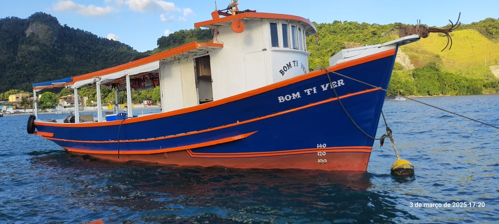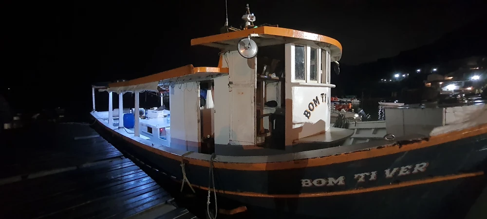 Pescaria em Angra dos Reis. Máximo de 10 pessoas Pescaria noturna Embarque normalmente as 14:00H e desembarque as 8:00H do dia seguinte. Os horário podem ser combinado. Não é possível embarcar antes das 14:00H. Pescaria de diurna Embarque normalmente é as 5:00H e desembarque as 18:00H do mesmo dia. O barco possui: Água doce Banheiro com sanitários e ducha Cozinha Dormitório Coletes salva vidas Iluminação toda em LED GPS Sonda Rádio VHF
