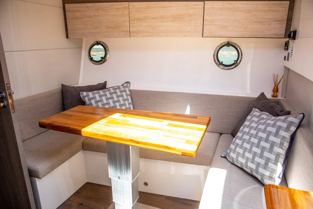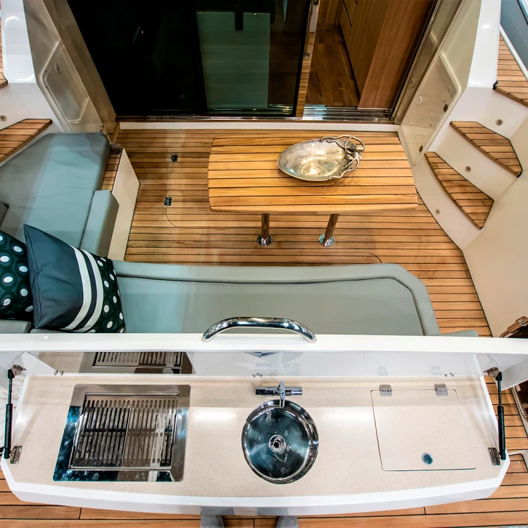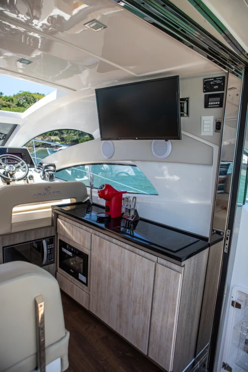 Além da imponência característica da marca, a Armatti 420 Sport Coupé impressiona pelas suas dimensões e tecnologias aplicadas quando comparada com barcos da mesma categoria – 42 pés com Hard Top – no mercado brasileiro Privilegia a parte externa com amplas áreas de convivência na proa, na popa e, inclusive, com opção de plataforma submergível. Proporciona conforto interno por meio de materiais de alto padrão e durabilidade. O salão conta com ambientes de estar, de refeições e central de comando. Em termos de inovações, além do cockpit fechado com porta de vidro, que garante mais um ambiente interno com climatização e alto conforto, o modelo possui grande suíte principal na meia-nau com cama central e janelas panorâmicas, tendência na Europa e Estados Unidos.