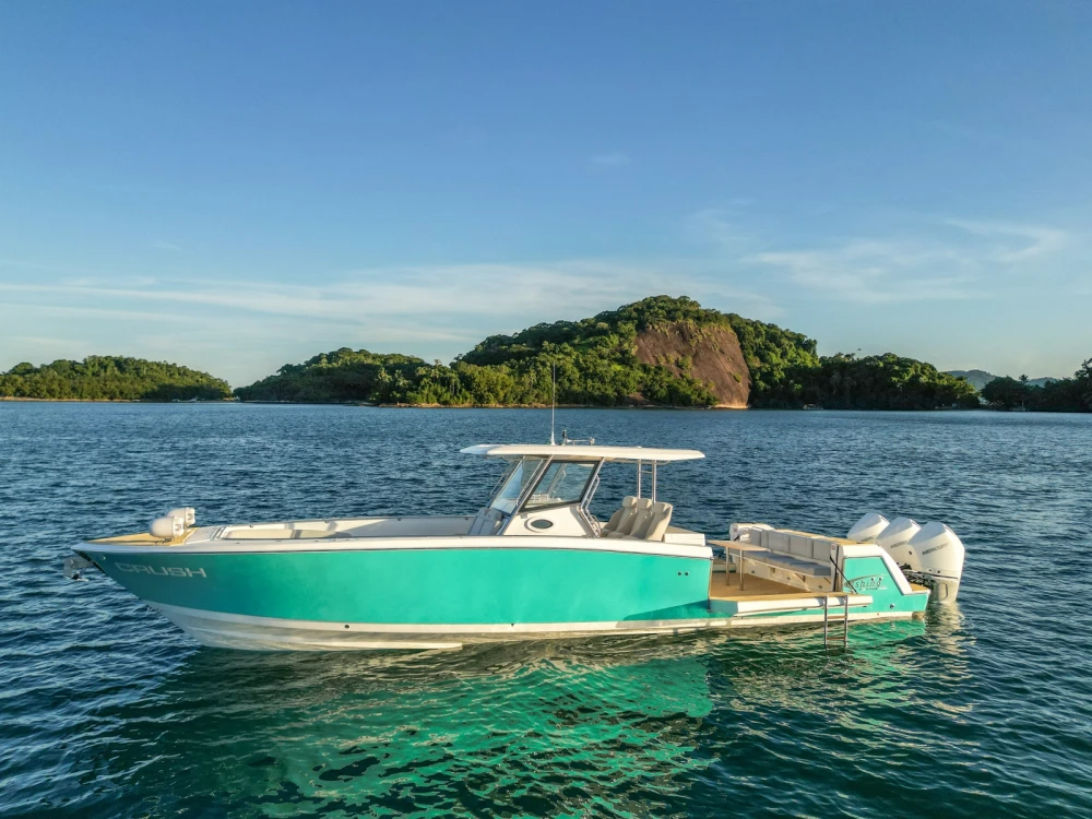 A perfeita fusão entre conforto, sofisticação e funcionalidade, a Fishing 410 Solarium é uma lancha projetada para aqueles que exigem o máximo em versatilidade no mar. Com seus 12,55 metros de comprimento e capacidade para até 16 passageiros, este modelo redefine o conceito de "Utility Boat" ao incorporar um solário e uma cama de casal ao console central, otimizando cada centímetro de espaço para circulação. Sua cabine, equipada para refeições e pernoite, proporciona a elegância e o conforto que os momentos prolongados no mar exigem. Já nas áreas externas, a popa espaçosa com decks laterais permite fácil circulação e acesso simplificado aos motores sob o convés. E para dias menos favoráveis, o opcional de para-brisa fechado garante maior proteção e comodidade ao piloto, enquanto as diferentes opções de revestimento oferecem um toque de personalização refinada.