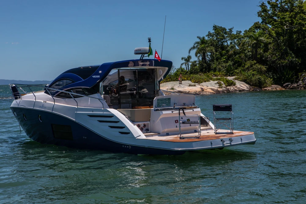 Armatti 420 Sport Coupe 2021 Parelha de Mercruiser 8.2 380 hp gasolina c/ Joystick apenas 197 horas * Gerador Netuno 5.2 KVA * 2 ar condicionado 16 mil BTUS * fogão de indução 1 boca * microondas * geladeira 80 lt cockpit * TV 32" * GPS Raymariner 9" * Hard top elétrico * Stolbag elétrico * mesa da cabine sobe e baixa automatico * solário proa * vaso sanitário elétrico * Boiler elétrico e mecânico * porta de fechamento do cockpit * VHF com antena * Flaps Digital * Limpador de parabrisa * Kit som Huricane * Churrasqueira a carvão no espaço Gourmet * Banco de baterias * Kit EVA plataforma e cockpit * Guincho elétrico, âncora, corrente, destorcedor.