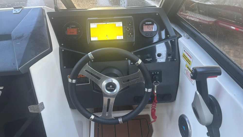Lancha Ventura V 195 Crossover ano 2024 é uma embarcação esportiva compacta, mas bem equipada, ideal para passeios diurnos em rios, represas e até litoral abrigado e registrada na MArinha de Goiás. Com motor Yamaha 150hp 4 tempos ano 2024 novissímo com apenas 5,5 horas de uso, ela oferece um bom desempenho e economia de combustível, especialmente para quem busca lazer com conforto. Todas as reviões feitas na autorizada YAMAHA (Premium Service - Brasilia / DF). Equipada com 2 baterias de 10o HA, capota, som digital, banheiro, Sonar GARMIN 7cx, pisos MOON DECK e com carreta rodovaria com freio e estepe da marca RONDON ano 2024 e IPVA 2025 pago. Embarcação muito nova e excelente para uso para lazer e conforto da sua familia. ABERTO A PROPOSTAS E PERMUTAS DE BENS DE VALOR MENOR.