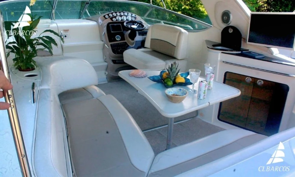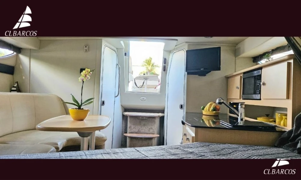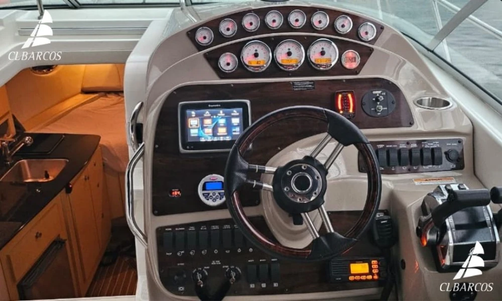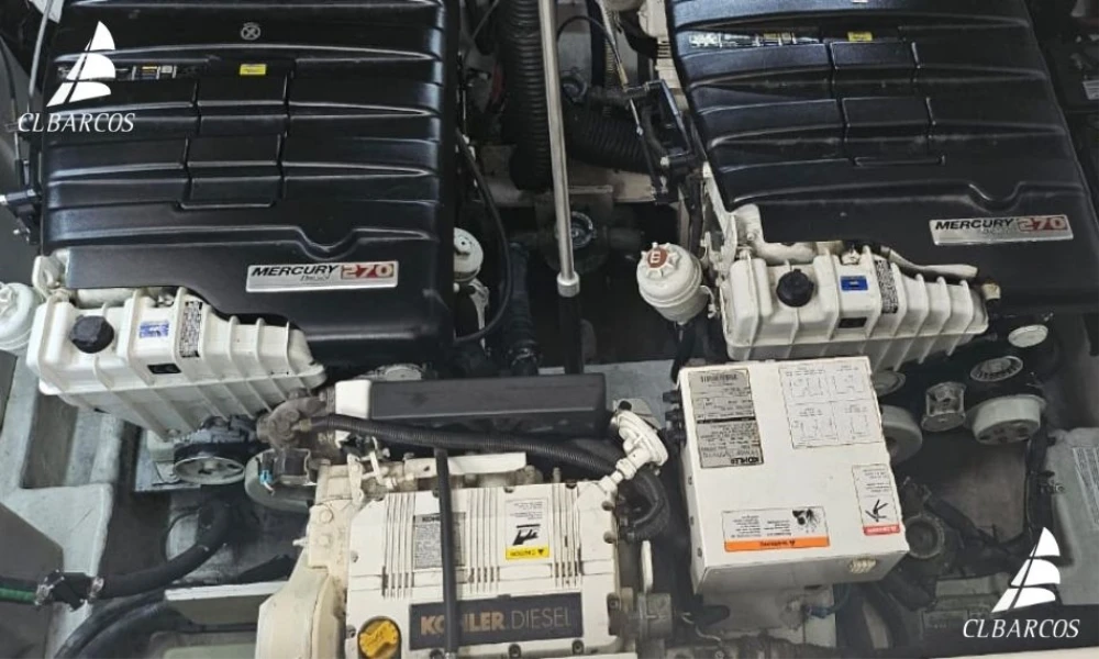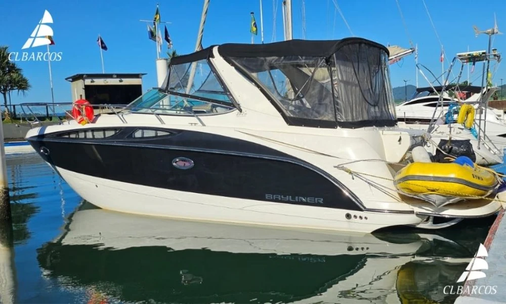 lancha Bayliner / 35 pés /Diesel/ 2 motores Mercruiser 270 HP / 2017 / 425 horas. Revisão maio 2025 ---- Ar condicionado Crusair Gerador Kohler 6KVA Boiler 20L Tanque água 160L Combustivel 600L Som Jhansen c/ 6 auto falantes + subwoofer Rádio VHF GPS Raymarine " touch" Geladeira 12 Volts Freezer (freezer mesmo e não geleira) na popa do barco Grill elétrico na popa Pia na Popa Bar externo Chuveiro com água quente tanto no banheiro, quanto o chuveiro de popa. Capota com fechamento total Sunbrella Vaso sanitário pressurizado com caixa coletora e masserador TV DVD Microondas Flap Tapete externo Mesa externa