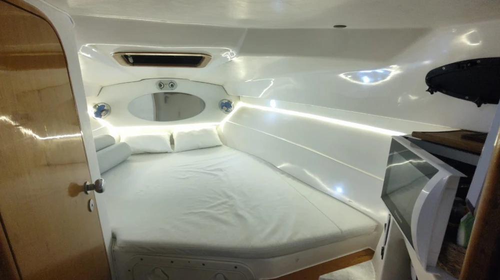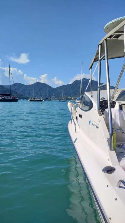*Carbrasmar Figther 2004. *Motor MWM Sprint 6cc com 160horas turbo intercooler. *Rabeta Volvo DP 290 *Rádio Uniden com antena longo alcance. *Guincho elétrico com 60m de corrente e âncora Bruce inox. *Vaso sanitário elétrico jabsco. *Tv Philips e antena seawatch. *Microondas. *Inversor Usina Onda pura. * Som com módulo hurricane com 5 alto falantes hurricane marinizados e 1 subwofer hurricane marinizados. *Âncora popa Fortress. *3 defensas polyform usa *Coletes salvatagem. *2 duchas. *2 pias *Carreta rodoencalhe.