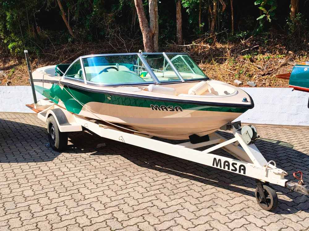 Lancha Esquimar; 2001; 19 pés; Motor Mercury 5.7 275 HPS 460hs original; Localizada no Yacht Club Paulista (YCP) na Represa de Guarapiranga.