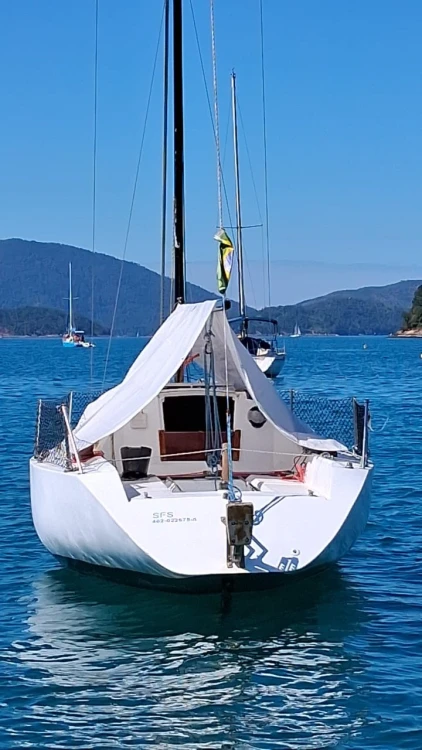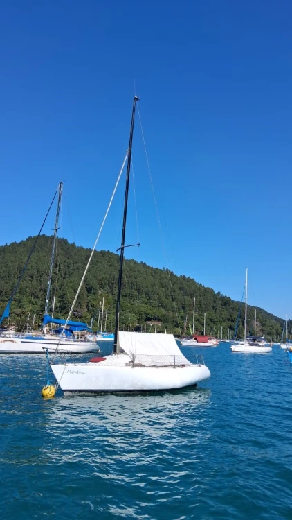 Nestor Volker 23 pes. Mesmo projetista dos Deltas. Velerio muito bonito e confortável e completo. catracas self, extensão carbono, motor mercury 5 hp novo, placa solar, muitas velas, bote, estofamento em bom estado. Soltar as amarras e velejar. Vendo em cotas. 25 % do barco... R$ 19.000 Em Ubatuba