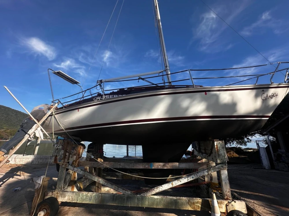 CRUISER 23 pés alongado com prainha -- Ano de construção 1984, Calado 1,40m, Capacidade 5+1, Altura cabine 1,50, Boca 2,48 /// Convés - 4 Catracas sea winch, 2 Stopper duplos aço inox, Targa em Inox com placa solar, Suporte para motor de popa reforçado (08/2025), 2 trilhos de genoa com carrinhos, Trilho e carrinho do traveler na entrada da cabine, 2 mordedores para o carrinho do traveler, Plataforma de Popa em fibra com escada, Churrasqueira alumínio /// Mastro -- Pintura (10/2024), Estaiamento novo (09/2024), Luz de ancoragem (topo), Luz de convés, 1 cruzeta /// Velas -- 1 grande com 1 riso reforçado (08/2025), 1 genoa 100 em bom estado, 1 genoa 150 em bom estado, 1 genoa grande para mastro maior, /// Interior - Tapete novo (08/2025), Pintura teto (08/2025), Fogão 2 bocas , Vaso elétrico instalado (08/2025), Caixa de gelo, Estofados da Sala (09/2024), Mesa de salão , /// Motor -- Mercury 8hp rabeta longa (em estado de zero), Motor elétrico Maruri , Galão de gasolina 10L para o bote, funil, Ultima revisão (01/2025)/// Elétrica e eletrônica -- Elétrica nova (08/2025), 1 Chave seletora de baterias de 2 posições, 1 baterias serviço 110a MOURA (08/2025), 1 bateria serviço 65a MOURA (08/2025), 2 placas solar 30w, controlador solar 40a, iluminação toda em led, Radio VHF (08/2025), Bomba de porão nova (08/2025) com automático/// Hidráulica -- 1 tanques de 200 litros flexível (10/2025), Chuveirinho pressurizado na popa e pia , Todos registros e passa cascos trocados (08/2025),/// Fundo--- Pintado em 08/2025, -aplicado com primer JOTUN (08/2025), -aplicado tinta JOTUN evenenada antiincrustante Active Preto, 48 meses (08/2025), Linha d’água para barco de 30 pés, Leme revisado e regulado (08/2025), Fundo revisado e sem osmose,/// Atracação e fundeio -- 1 ancora 7,5kg com 5m corrente 8mm e 30m cabo 12mm 3 pernas trançado, 2 Defensas (09/2024), 4 cabos de 3 pernas trançado (09/2024),/// Salvatagem e segurança-- 4 Coletes classe 2 (09/2024), Bóia circular com retinida (09/2024), 1 extintores ABC 1kg, /// Diversos -- Todos cabos novos (09/2024), Capa da vela mestra, Piloto automático ST2000 zero (06/2025), Barco em estado de novo, todo reformado, colocado na água (06/2024)