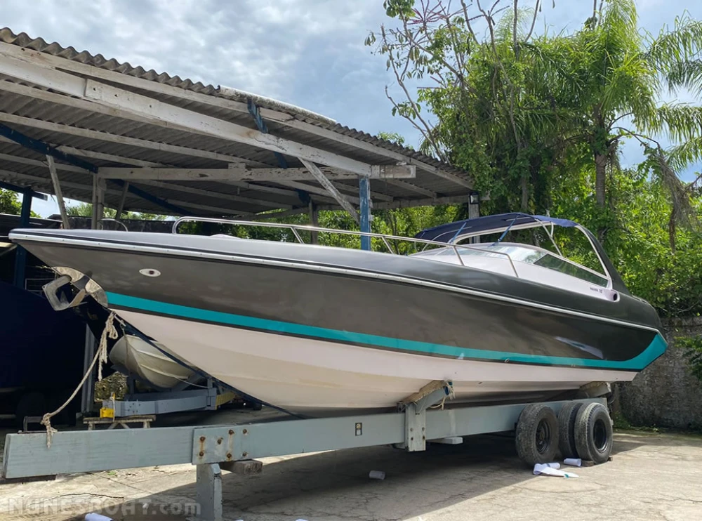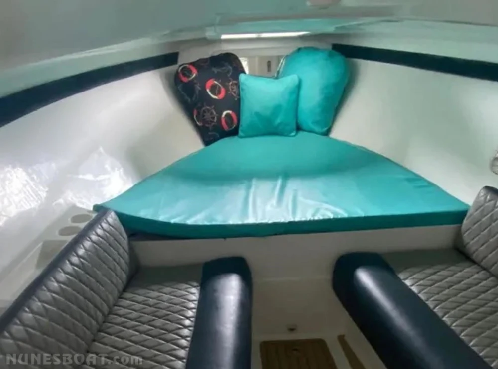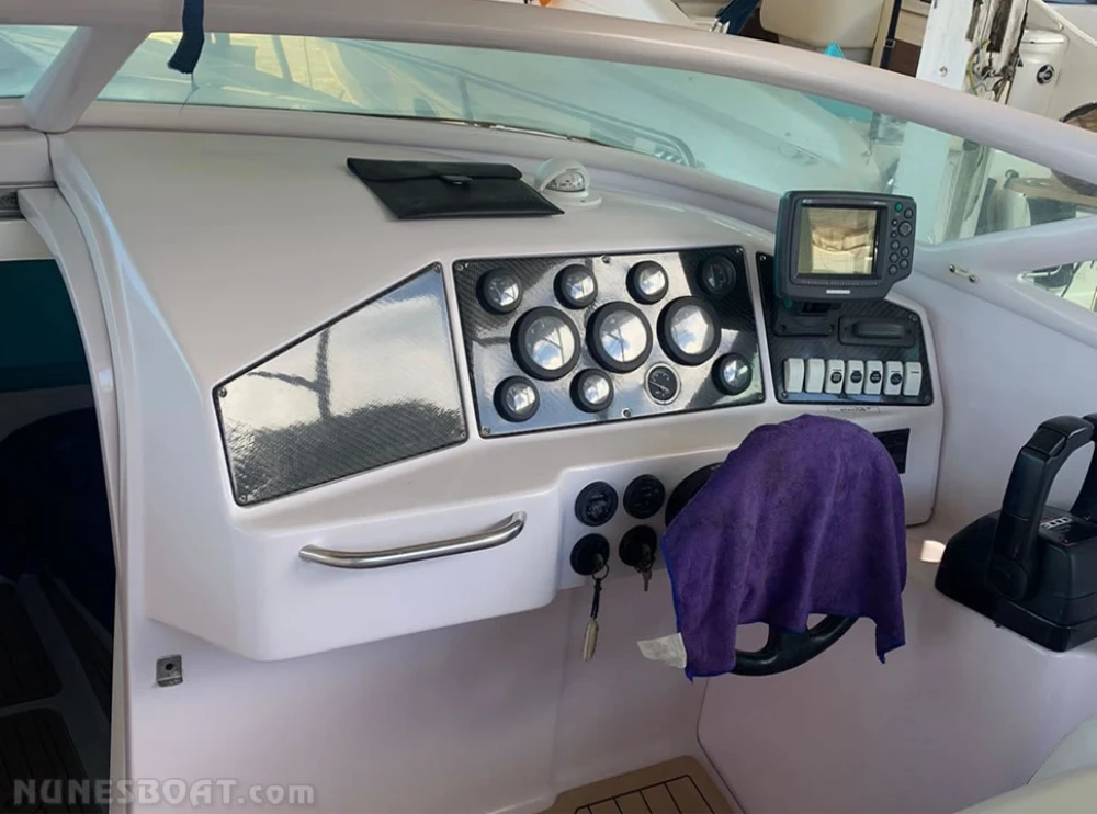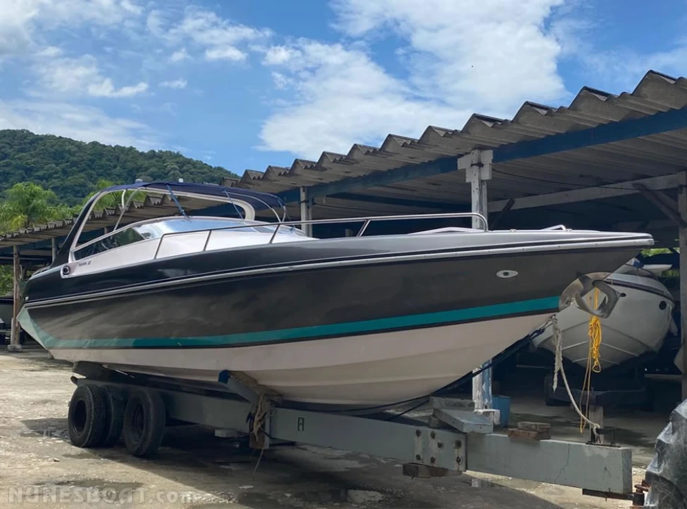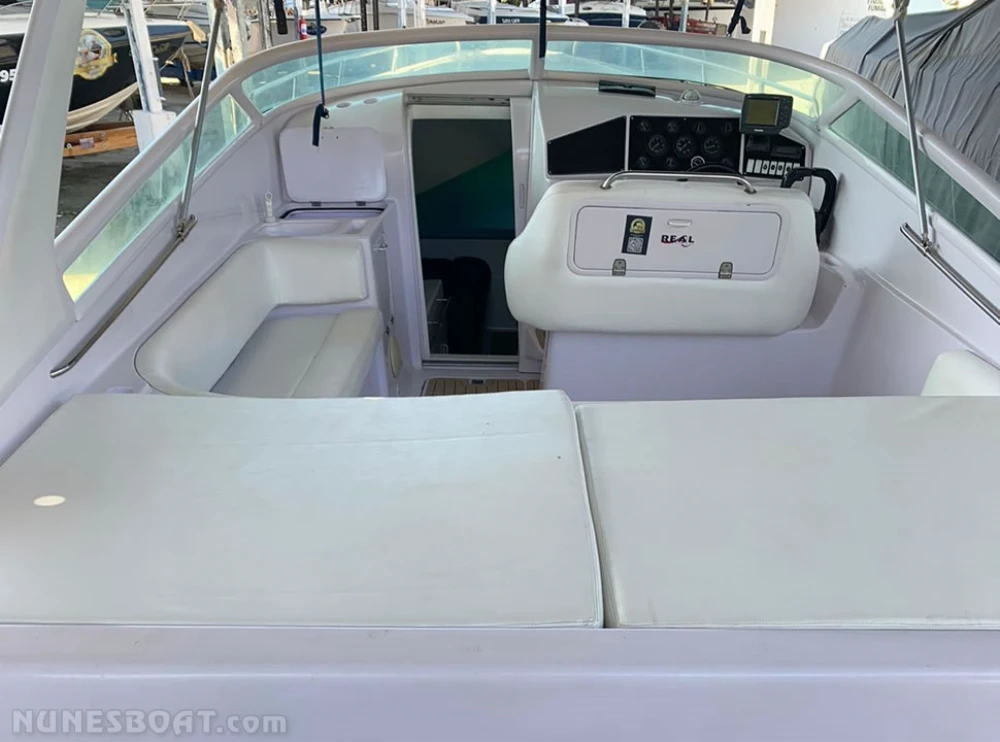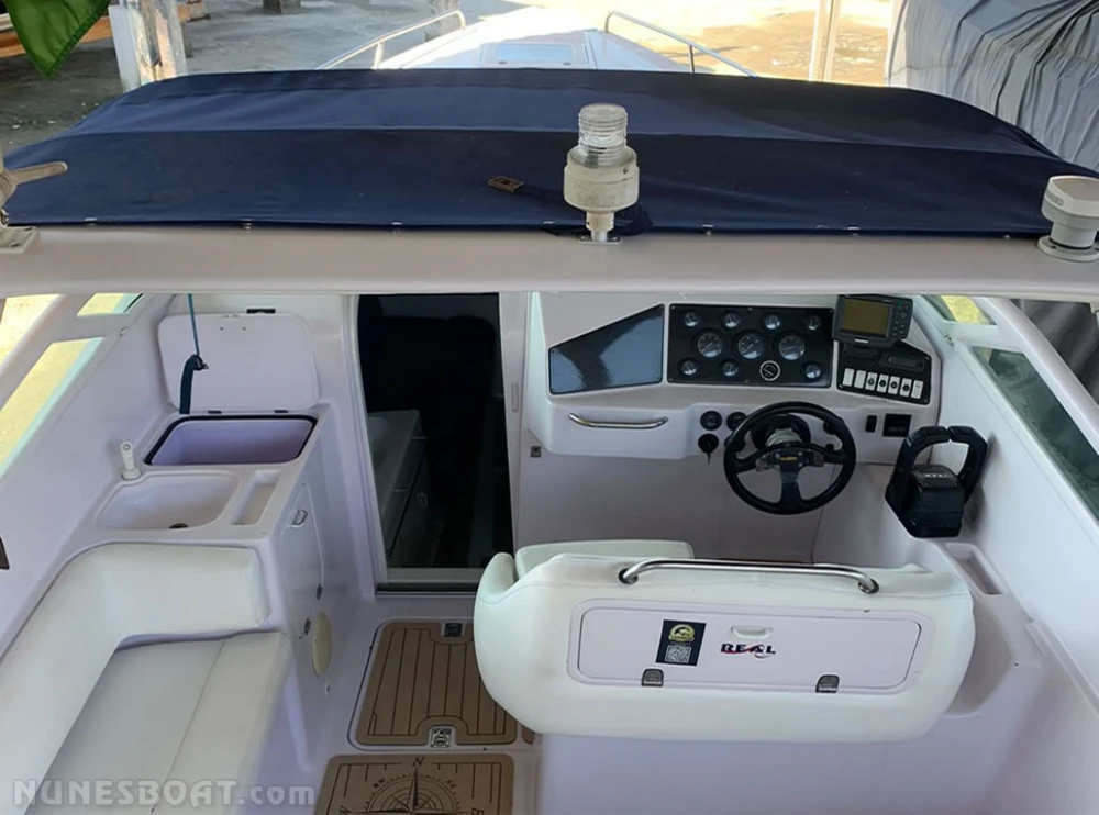 CÓD 5322 REAL HAWK 32: 1997, 2x mercruiser 5.7 350hp, gasolina, rabetas bravo one, 460hs de uso, 37 top e 25 cruzeiro, âncora, antena de vhf, (4) baterias, bomba de água doce, (3) bombas de porão, bússola, buzina, capota, carregador de bateria, carreta de encalhe, churrasqueira, chuveiro, (11) coletes, direção hidráulica, (2) extintores, flap hidráulico, rádio vhf, sanitário elétrico, som, strobolight... F/c. Nunes (13)99706-0395