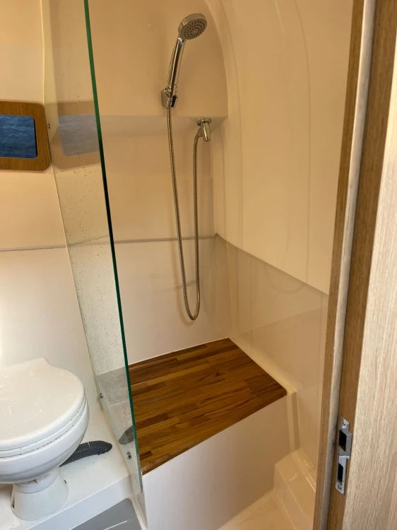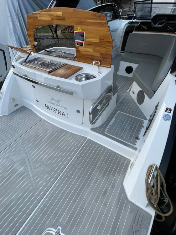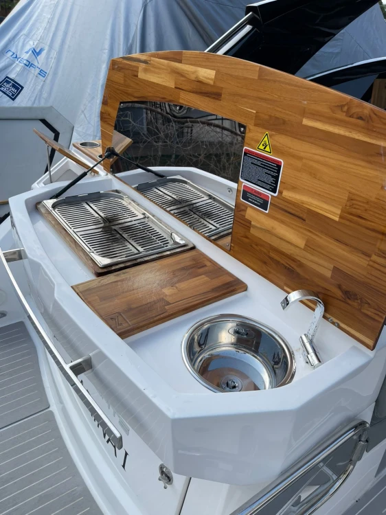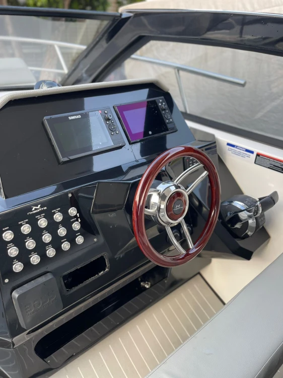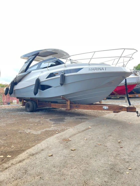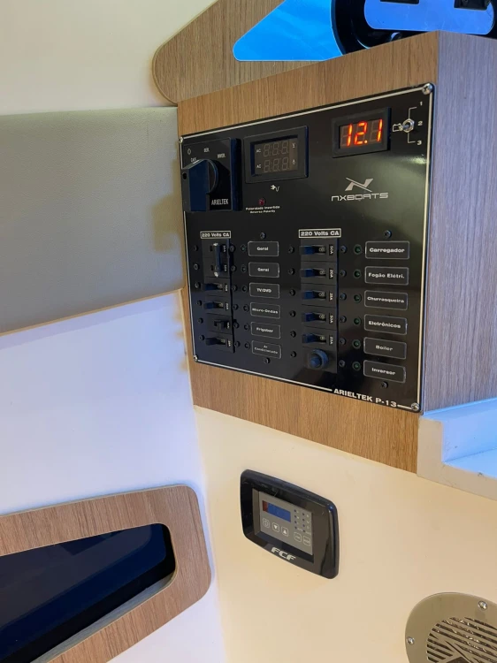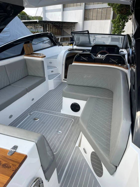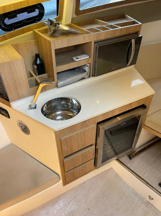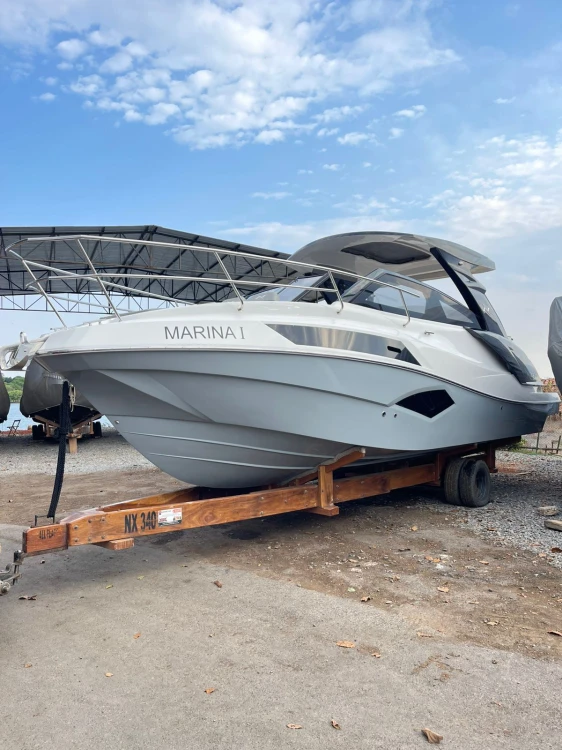Acessórios: * Carreta de encalhe * Teka Sintética * Micro-ondas * TV + Antena digital * Ancora de INOX 10kg + Guincho elétrico completo com corrente * Som Premium + 8 Falantes Marinizados + Aparelho da Boss + Subwoofer * Carregador de bateria * Espaço gourmet com churrasqueira à carvão * Frigobar * Cristaleira * Ar condicionado marinizado de 12.000 BTUS * GPS 7 Polegadas * Pintura personalizada de teto * KIT FLAP * Gerador Swell - Marinizado e Diesel * Tomada de Cais * Bussola