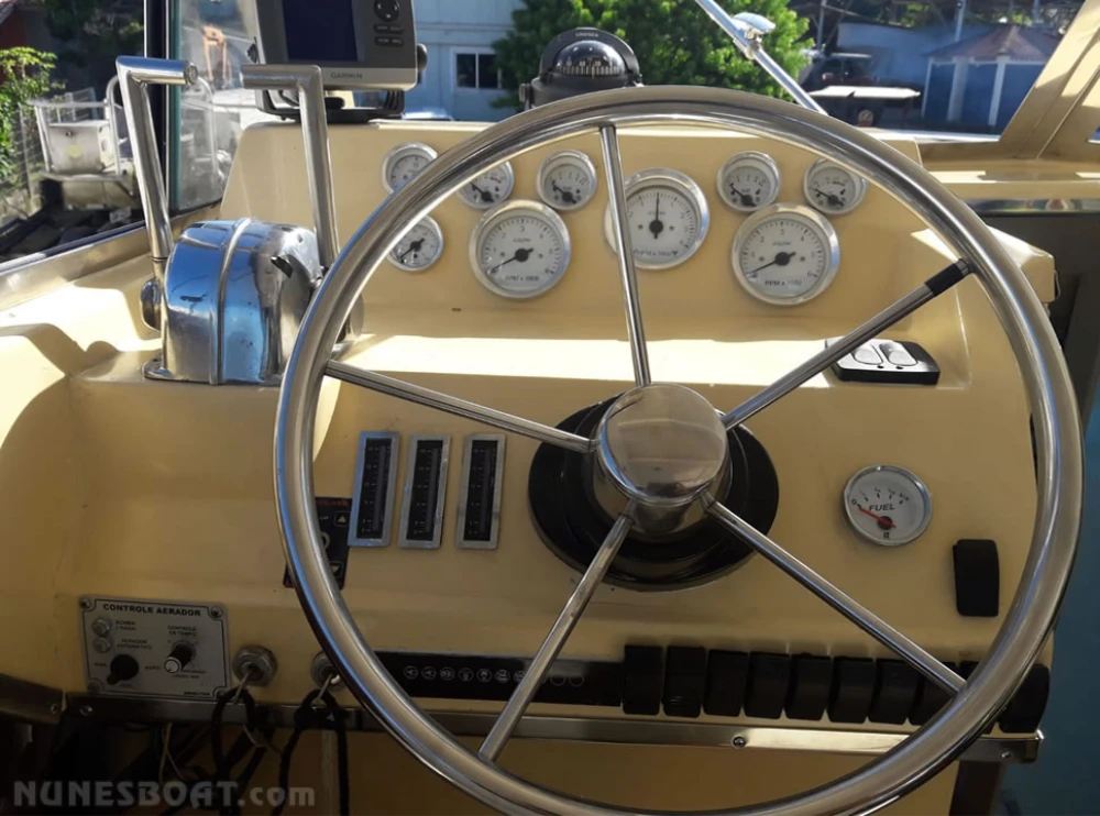 CÓD 2523 CARBRASMAR 26: bonito, 1973, 2x mwm sprint 6cc 180hp, diesel, 230hs de uso, 35 top e 23 cruzeiro, âncora, bateria, boiler, bomba de água doce, (2) bomba de porão, bússola, capota c/fechamento total, carreta de encalhe, chuveiro de popa, (8) coletes, (2) defensas, extintor, farol, flap hidráulico, geleira, gps c/plotter, rádio vhf, sanitário elétrico, som, (2) ventilador... F/c. Nunes (13)99706-0395