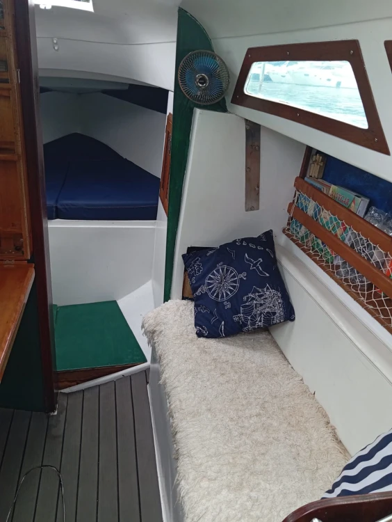 Venda uma cota de treis Veleiro: Sr. Marujo Modelo: Veleiro Brasília 27 Fabricante: Brasilia nautica Ano: 1977 Comprimento: 27 pés Boca: 2,44 m. Calado: 1,60 m. Altura da Cabine: 1,75 m. Tanque de água: 80 L. Material do Casco : fibra de vidro Pintura de fundo: Novembro 2023 Pintura de casco e coves : Novembro 2023 soporte para placas solares e guincho para subir bote de apoio (targa) en inox. Plataforma de Popa y escala (inox e madera) Motor de Popa Marca : Hidea Modelo : Rabeta longa Potencia: 15 HP Ano: 2023 Horas de uso : 250 hs Combustivel : gasolina e oleo 2T tanques de combustivel 1 de 24 litros 1 de 12 litros Velas 1 Mestra em dacrom con 2 maos de risos 1 Genoa em dacrom (recosturada proteçàon UV 2025) 1 Balon ( spy ) Enrolador de genoa 5 Winches ( 2 catracas) 5 stoper cabos de genoas e balon novos 1 tangon timon de cana Eletronicos e instrumenntos Estação de vento: Cruiser Ecosonda Garmin Striker 4 novo 2025 Rádio vhf Uniden mc 535 antena e fio trocado 2023 Búsola Electricas 1 Bateria Nautica 105 A (2024) 1 Bateria Estacionaria 105 A (2025) corte de baterias 3 posiciones 2 placas solar 100 w y 80 w, dos controladores Epever Inversor 500 w. 2 tomadas de 12v 3 tomadas USB 5 v 1 gerador inverter VONDER 1100 w. 4t. a gasolina 1 Usina 50 w Spark Tablero electrico com votimetro digital Luces led en cabine luces led navegaçao e fundeio Luses led creuzeta e copic Bomba de poau automatica bomba de agua doce geladeira de pouzo eletrica 12 v com regulador (2024) 2 ventiladores 12 v. Fudeio 2 ancoras Bruce 7 KG 1 ancora Danforth 7 KG 20 metros de corrente 10 mm 50 metros de cabo principal 50 metros de cabo de reserva Acessórios WC manual Bomba de Porau manual Pia en cocinha e banho fogao 2 bocas com forno marca Semer com sopote de panelas 2 bochao de gas de 2 kg 8 coletes salvavidas bigentes 3 arneses segurança Cocina portatil uma boca (campin) Bimini de popa mesa interior revativel mesa copic desmontavel ducheiro de popa agua doce Alicate Tesoura cota cadeados 1 bombonas pra agua doce de 20 L. 1 tanque de gasolina 20 L. de reserva equipamento cosinha caixa de ferramentas Estofados de camarote de proa novos (densidade 33) Bote de apoio Zafir fundo flexivel 2 m. Motor Mercury 3.3 hp Motor toyama 2.2 hp Documentaçao área de navegaçao COSTEIRA Capacidade máxima de passageiros 7+1 situçaon: em dia O barco fica no Saco da Ribeira, Ubatuba, SP wathsapp : +54 11 36967695 Custos de manutençaon mensuais aluguel de poita e marinheiro R$ 600. servicio de taxi boat + duchas + baulera + gelo (Aumar) R$ 600. limpeza do fudo R$ 100. Total R$ 1300. ( cada cuota R$ 433. )