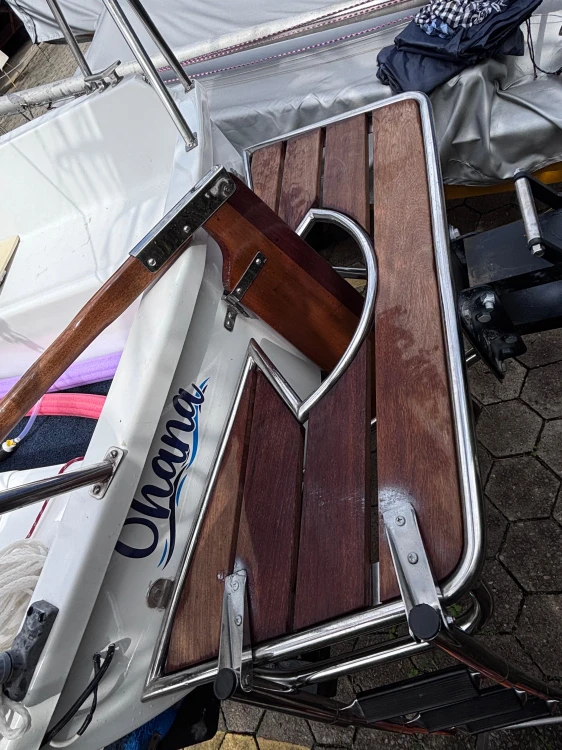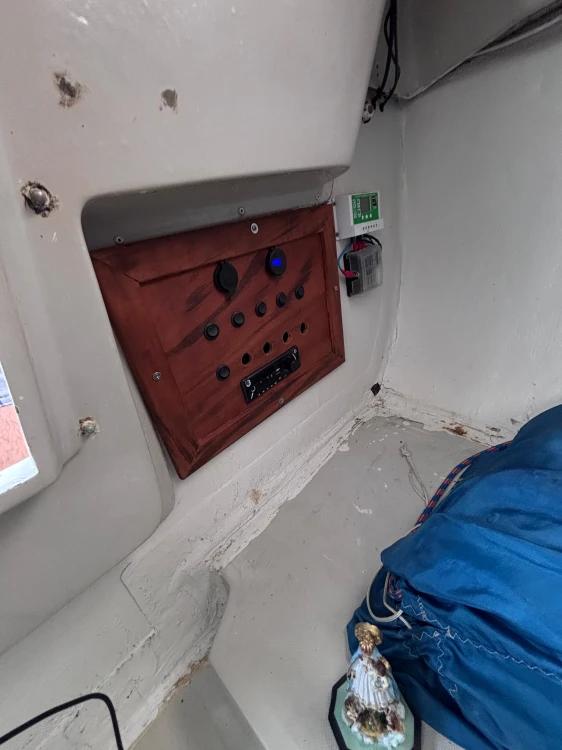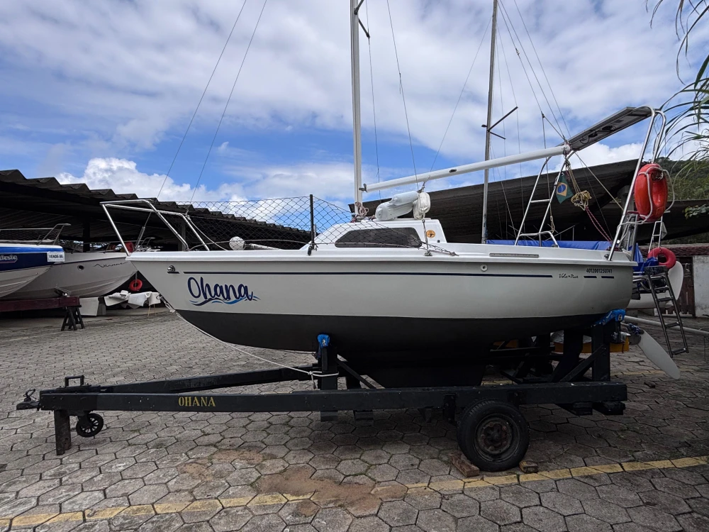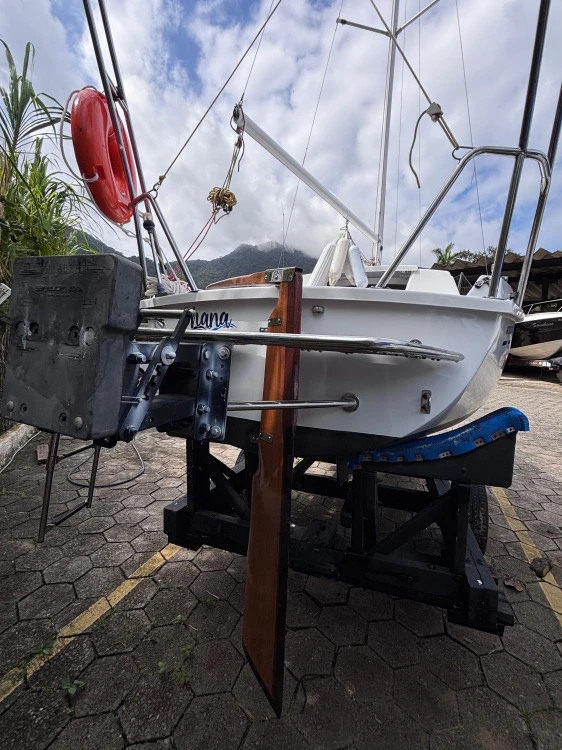 MOTORIZAÇÃO •? ?01 motor ?Motor Mercury 5HP 2T + Galao de 10 Litros - Ambos novos. 5 horas de uso.?? EQUIPAMENTOS / Acessórios • 01 vela genoa(bom estado) e 01 Velas mestra (bom estado) – 01 Vela balão(usada) ? • 01 âncora de 3,5 kl e 01 âncora de 7, kl -15 metros de corrente galvanizada a fogo - 50 metros de cabo de âncora • Targa com duas placas solares de 30W + Bateria estacionaria de 40amp (nova) • Luzes de Navegacao (BB, BE, Alcance) / Luz de cabine • 4 coletes Ativa novos. • Extintor 1kg • Garmin Strike 4cv (Sonda de profundidade) • Salva Vidas • Estofamento cabine novo, com tecido resistente a agua. • Pintura geral nova • Revisao eletrica com inclusao de painel de controle (Bluetooth, botoes de comando, carregador de celular, tomada 12v) • Prainha em inox com escada 3 degraus. ? Obs.: Barco pronto para navegar, não precisa fazer nada.