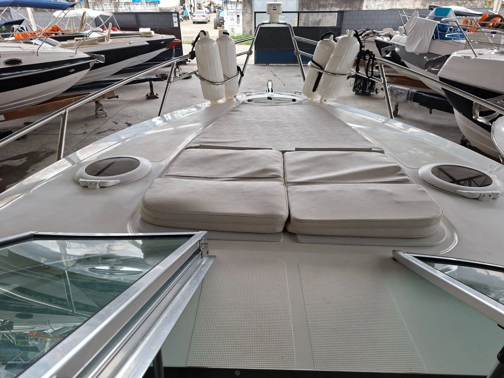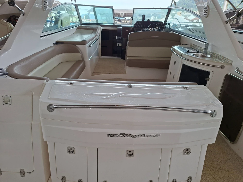 Oportunidade Única: Cimitarra 340 (2015) - Baixas Horas, Super Equipada e Impecável em Ubatuba! Imagine-se navegando pelas mais belas praias de Ubatuba a bordo de uma lancha que combina perfeitamente performance, conforto e segurança. Esta Cimitarra 340, ano 2015, é a escolha ideal para quem busca uma embarcação completa, com manutenção rigorosamente em dia e pronta para proporcionar momentos inesquecíveis no mar com a família e amigos. Com apenas 290 horas de uso, seus potentes e confiáveis motores Volvo Penta estão praticamente novos. Uma lancha para quem não quer ter dor de cabeça, apenas o prazer de navegar. DESTAQUES PRINCIPAIS: • Baixíssimas Horas: Apenas 290h, uma raridade para o ano. • Manutenção Impecável: Muflas novas (menos de 50h) e 5 baterias novas na garantia. • Totalmente Equipada: Com gerador, ar-condicionado, GPS/Sonar Garmin e todos os acessórios para conforto e segurança. • Independência Elétrica: Gerador Swell a diesel, inversor e carregador de baterias inteligente. • Documentação 100% em Ordem: Só transferir e navegar. __________________________________________________________ FICHA TÉCNICA COMPLETA • Estaleiro: Cimitarra • Modelo: 340 • Ano: 2015 • Tamanho: 35,6 pés (10,85 m) • Boca: 3,2 m • Localização: Ubatuba, SP MOTORIZAÇÃO • Motores: 2x Volvo Penta 225 HP com rabeta • Horas de Uso: 290 horas • Combustível: Gasolina • Comando: Eletrônico CAPACIDADES • Passageiros: 1 tripulante + 11 passageiros • Tanque de Água Doce: 200 litros CABINE E CONFORTO • Quartos: 1 • Banheiro: 1 (com vaso sanitário elétrico) • Sala e Cozinha: Conjugadas e equipadas • Ar-Condicionado • Cozinha: Geladeira, micro-ondas e cooktop de indução 2 bocas • Entretenimento: TV 32” com DVD e Som Pioneer com Bluetooth • Acabamento: Iluminação em LED e cristaleira _________________________________________________ _______ACESSÓRIOS E EQUIPAMENTOS Navegação e Segurança: • GPS e Sonar Garmin Striker 4 • Rádio VHF • Bússola Náutica Ritchie • Farol de busca Searchlight com controle remoto • Guincho elétrico para âncora de proa • Âncora de popa • Salvatagem completa • 4 Defensas G4 Elétrica e Operação: • Gerador Swell (Diesel) • Carregador de Baterias GW Energy 50A • Inversor 110V • 5 Baterias Novas na Garantia (2 para motores, 2 para serviço, 1 para gerador) • Tomada de cais • Direção hidráulica • Carreta rodoencalhe com pneus novos (2 eixos, 6 rodas) Lazer e Convívio: • Amplo Solário de Proa para banhos de sol • Bancada gourmet na popa com pia e churrasqueira a carvão • Ducha de popa (água doce) • Capota de lona em perfeito estado __________________________________________________ CONDIÇÃO GERAL: Lancha em excelente estado de conservação, com manutenções preventivas sempre realizadas. Casco, estofados e equipamentos sem detalhes. É pegar e usar durante toda a temporada. Agende uma visita e venha se encantar!