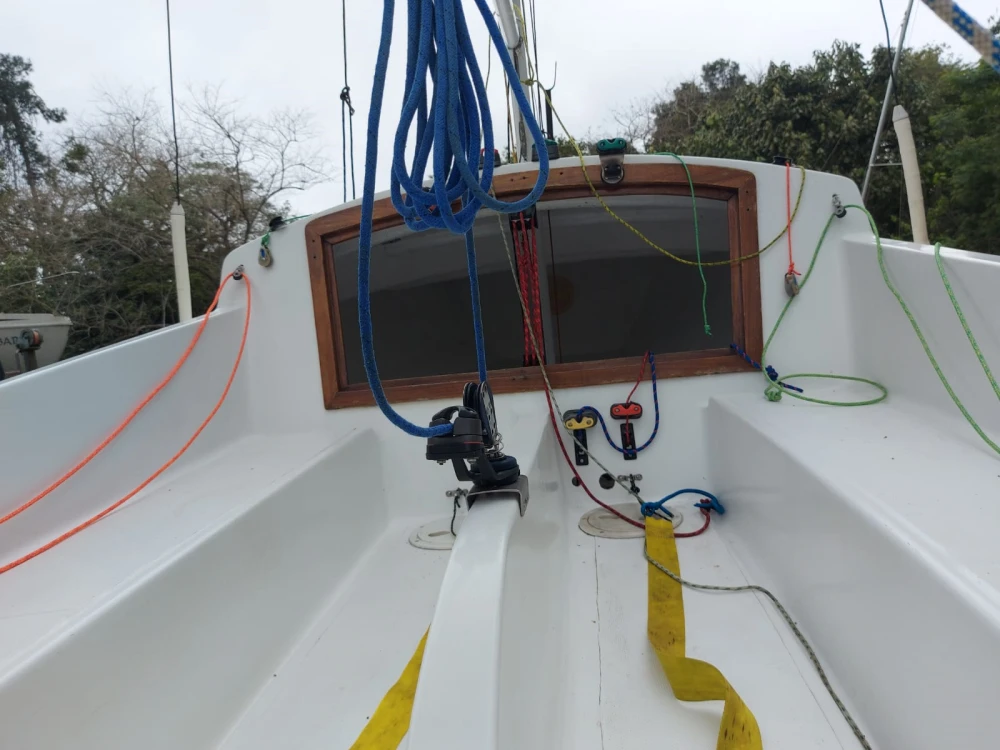 Veleiro Day Sailer reformado em 2022 com foco em melhorar o desempenho da embarcação nas regatas. Preparado e completamente equipado para essa finalidade. Indicado para praticantes do esporte. Incluso capa, acessórios e carreta rodoviária. Motor Mercury 3.3. Documentação OK. Localização: Represa de Guarapiranga, São Paulo Sobre a reforma: adequação do peso e textura do casco para redução do atrito com a água e ganho de velocidade durante as provas. Casco lixado, refeita toda a pintura e linguagem visual do nome da embarcação. O veleiro Day Sailer é um clássico, voltado para segurança e navegabilidade, ideal para águas interiores. Estrutura forte e resistente, com leme e bolina retráteis. Bóia de tope. Transferência nominal da embarcação e da carreta rodoviária por conta do comprador. Especificações: Nome da embarcação: Blue Board Sem propulsão - embarcação a vela - apropriado para competições. Construtor: Mariner - Ano 1985 Material do casco: fibra de vidro Totalmente reformado em 2022 com foco em regatas, com instalação de ajustes finos para ganho de velocidade nos campeonatos. Comprimento 5,20m Linha d'água 4,88m Largura 1,90m Calado mín 0,18m / máx 1,14m Carreta Red Boby Terra Nova Fabricação 2005 Placa final 98