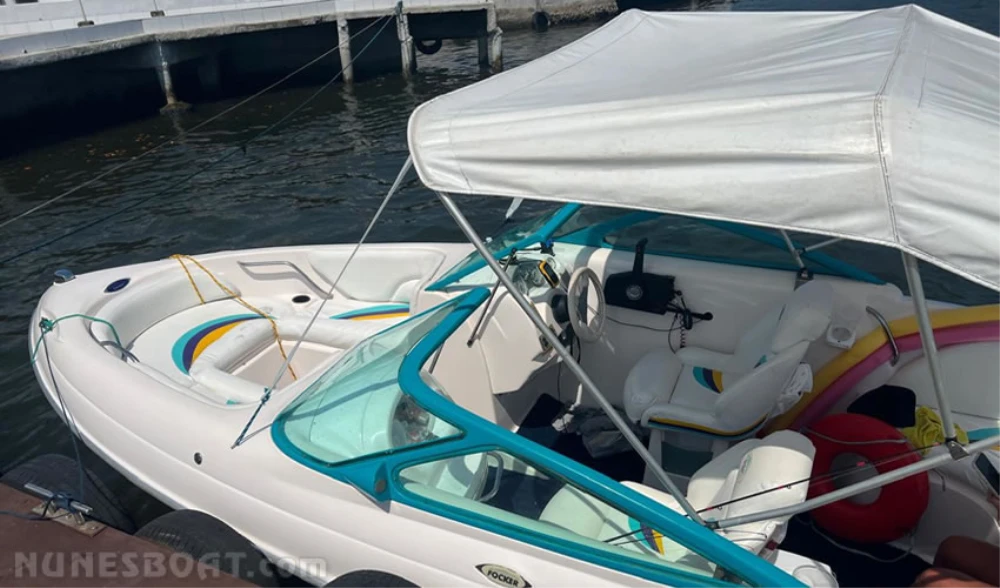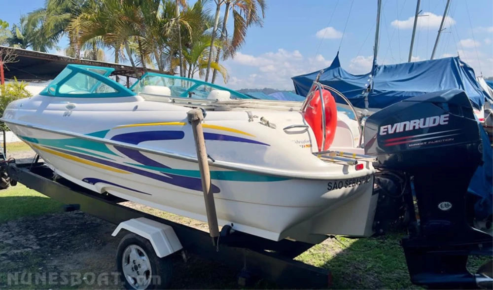 CÓD 0810 FOCKER 190: proa aberta, 2001, evinrude 115hp, gasolina, 260hs de uso, 38 top e 26 cruzeiro, âncora, bateria, bomba de água doce, bomba de porão, bússola, capa, capota, carreta rodoviária, chuveiro de popa, (4) coletes, (2) cooler, extintor... F/c. Nunes (13)99706-0395