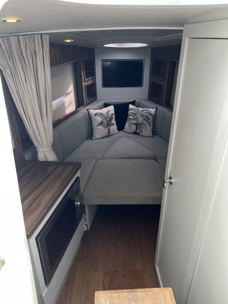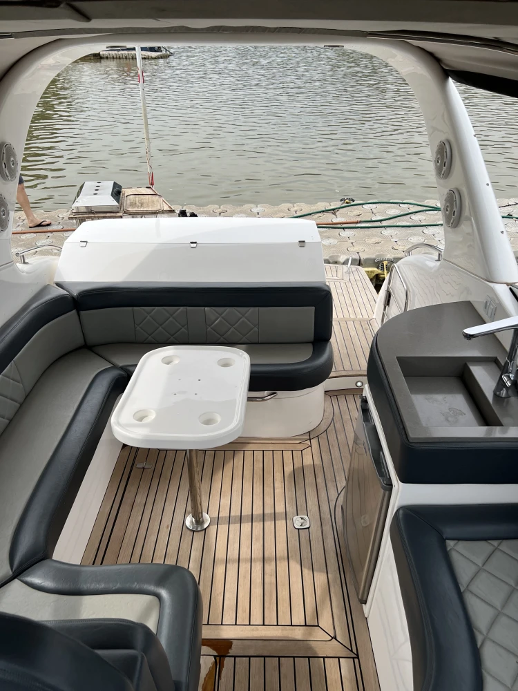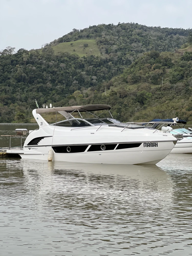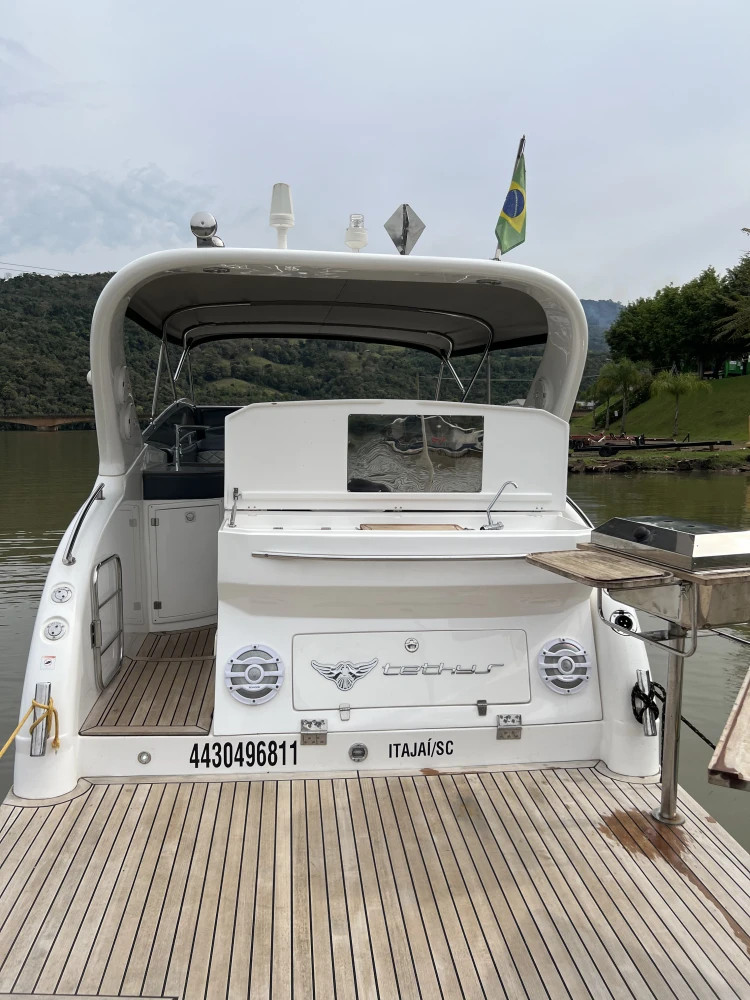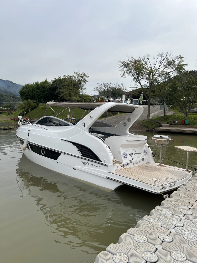 Lancha Tethys 31 2019 com 87horas Dois motores Volvo de 280hp. Barco de somente água doce. Valor: 619.000,00. INTERNOS – COCKPIT – CABINE Iluminação em LED Tapete vinílico - palha Banco do piloto Comando de pilotagem Bússola Buzina em inox Luzes de cortesia em inox - LED Móveis/divisórias compensado naval Som da marca Fusion Alto falantes marinizados JBL e kicker Hidráulica - stec Painel elétrico - BSEA Persianas (quarto e toalete) Mesa em teka Toalete Colchões camas GPS Raymarine 5" com sonda e carta Lixeira - cockpit Fogão indução - 2 bocas Forno microondas 20L Ar condicionado 6.000BTUS Gerador - Onan 5kwa Boiler - 20 L - Isotemp TV 24 Refrigerador Elber 80L Tanque de águas negras Tanque de combustível certificado Sistema Anti Incêndio - sea fire
