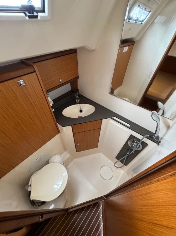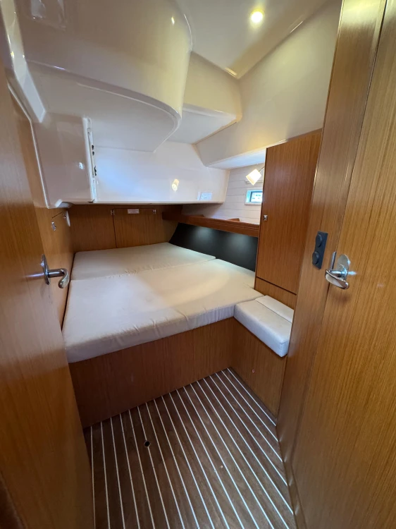 Bavaria Cruiser 46 Eleito European Yacht of the Year 2015 na categoria Family Cruiser, o Bavaria 46 é um dos modelos mais premiados da marca: muito espaço, conforto de casa e segurança para travessias longas. O barco acomoda até 6 pessoas. A suíte master na proa é enorme, com banheiro dividido em duas áreas, e as cabines de popa também têm camas de casal e banheiros privativos. O salão é super iluminado, tem pé-direito alto, cozinha completa e acabamento em madeira nobre. No convés, destaque para o cockpit espaçoso, com mesa em teka e dupla roda de leme em fibra de carbono. A plataforma de popa vira um verdadeiro deck de praia, perfeita para banho de mar e embarque no bote. Projetado pelo Farr Yacht Design e construído pela Bavaria, é um veleiro que une performance, robustez e bem-estar. Histórico recente • Segundo dono, comprado em outubro/2023. • Desde a chegada ao Brasil, o barco foi pouco utilizado, o que se reflete nas baixas horas de motor (816 h). • Logo após a compra, passou por uma grande reforma no Iate Clube do Rio, incluindo elétrica, hidráulica, capotaria, mecânica, estofamento, janelas e teca. • Há 4 meses, após a substituição do hélice, a rabeta foi vistoriada na Píer Boat (Guarujá) pelo Wagner, referência nº1 da Volvo Penta no Brasil. Aproveitando a ocasião, o proprietário investiu mais de R$ 35 mil em peças preventivas (discos, anel de acoplamento e outros componentes fundamentais). • A última manutenção foi em 12/09/2025, com a troca das duas bombas de água dos aparelhos de ar-condicionado (instaladas Syllent novas). ? Hoje, o barco está 100% pronto para navegar, sem nada pendente. Localizado no Rio de Janeiro e disponível para visita, é só agendar. Valor: R$ 2.500.000,00 Abaixo segue o inventário completo e ficha técnica. Modelo: Bavaria 46 Cruiser Fabricante: Bavaria Yachts (Alemanha) Projeto: Bruce Farr / Farr Yacht Design Ano de construção: 2015 Comprimento total (LOA): 13,60 m Linha d’água (LWL): 12,90 m Boca (Beam): 4,35 m Calado (Draft): 2,18 m Deslocamento: 12.254 kg Capacidade de água: 360 L Tanque de diesel: 210 L Material do casco: Fibra de vidro Estaiamentos: Originais Mastreação: Seldén Pintura de fundo: feita em maio/2025 (1 demão de primer Intergard + 5 demãos de antifouling International UN1263 – AkzoNobel) Velame • Vela Mestra em Dacron, enrolar no mastro Seldén, com capa UV/UVA • Genoa em Dacron, enrolador Furlex 304S, capa UV/UVA • Gennaker em nylon, nunca utilizado (original, no saco) Motorização • Motor Volvo Penta D2-75 F (turbo), 816 h • Transmissão: Rabeta modelo 150S • Hélice fixa de 3 pás (Volvo Penta), instalada em ago/2025 • Bateria do motor: Heliar 100 Ah Eletrônicos e Navegação • Garmin GPSMAP XS (touch screen) integrado a radar, AIS e piloto automático • 2 displays multifunções (vento, velocidade, profundidade, etc.) • Rádio VHF Garmin GHS i (fixo, interno) • Rádio VHF Garmin GHS 20 (portátil, base de carga no leme bombordo) • Antena Statlink Sistema Elétrico e Equipamentos • Gerador Cummins Onan 7,5 kVA – 897 h (bateria Heliar 100 Ah) • Baterias de serviço: 3 Freedom Estacionárias 115 Ah • Inversor Knup KP-586, 3.500 W • Iluminação 100% LED (substituída em fev/2024) • Ar-condicionado: • 1x Dometic 16.000 BTU (salão + suíte de proa) • 1x Dometic 10.000 BTU (suítes de popa) • Eletrodomésticos: Freezer Isotherm 12 V, Geladeira Waeco, Micro-ondas Panasonic 21 L (127 V), Torradeira Electrolux TSN10 (127 V), Cafeteira Nespresso D62 (127 V) • Bombas: • Pressurização Jabsco Par-Max 2.9 (12 V) • Chuveiros Whale Gulper IC (12 V) • Porão Jabsco Par-Max (12 V) • Sanitários: 3 vasos elétricos TMC (12 V, um em cada suíte) • Plataforma de popa elétrica (subida/descida) • 2 catracas elétricas Lewmar 55” (escotas da genoa) Acessórios • Capotaria completa: Bimini + Dog House (Pepe Capas) • Capas de proteção: Dog House / Convés / Cockpit (Pepe Capas) • Bote de apoio Zefir 2,10 m (fundo rígido + capa UV/UVA) • Motor de popa Mercury 5 hp • Fogão a gás 2 bocas + forno (original) • Churrasqueira Magma inox • 2 pranchas de stand-up paddle (com capas térmicas e remos) • Catracas manuais Lewmar 45” (adriças, mestra, esteira, burro e sistema leva-e-traz) • 10 stoppers Spinlock • Moitões e ferragens Seldén Atracação e Fundeio • Âncora Bruce 20 kg • Guincho elétrico Quick • Corrente 100 m • Espias e defensas Salvatagem • Kit obrigatório completo • Balsa salva-vidas Documentação • Área de navegação: mar aberto / costeira • Capacidade máxima: 10 + 1 pessoas • Situação: toda em dia