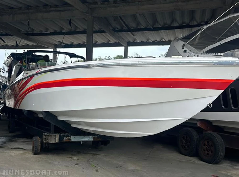 CÓD 6351 SCARAB 38: 1993, 2x mercedes benz 366 320hp, diesel, 705hs de uso, 38 top e 26 cruzeiro, âncora, bateria, bomba de água doce, (2) bombas de porão, bússola, buzina, capota, carreta de encalhe, chuveiro de popa, (11) coletes, (3) defensas, direção hidráulica, extintores, farol, flap hidráulico, fogão a gás, geladeira, gps c/plotter, guincho elétrico, rádio vhf, sanitário comum, som, teca eva... F/c. Nunes (13)99706-0395