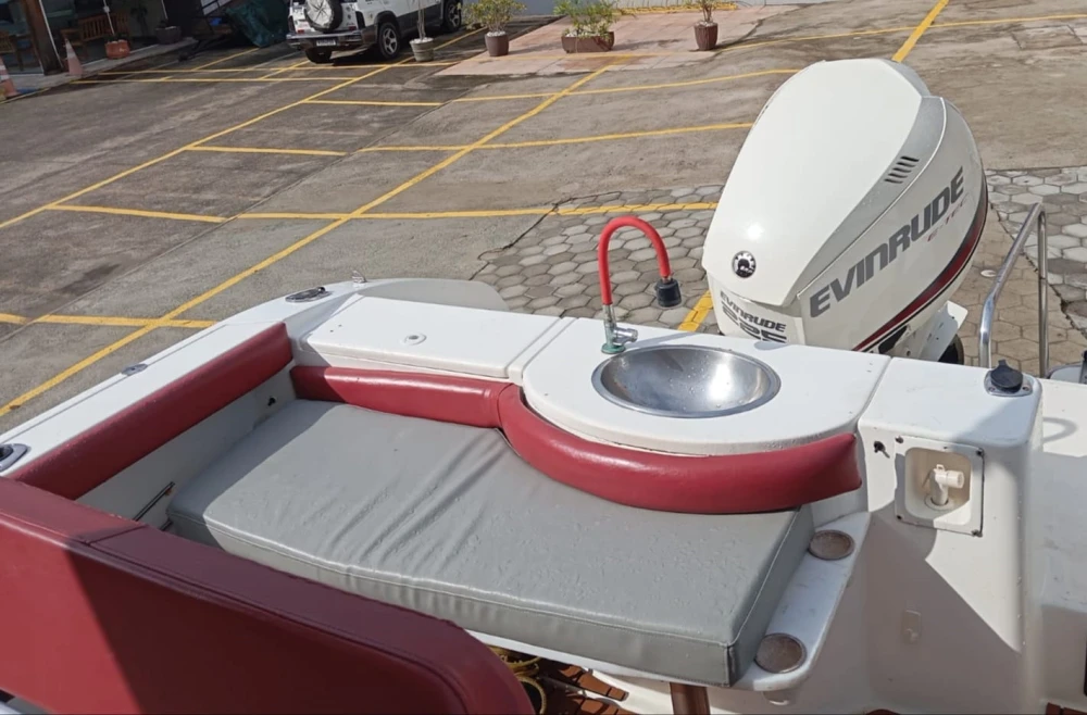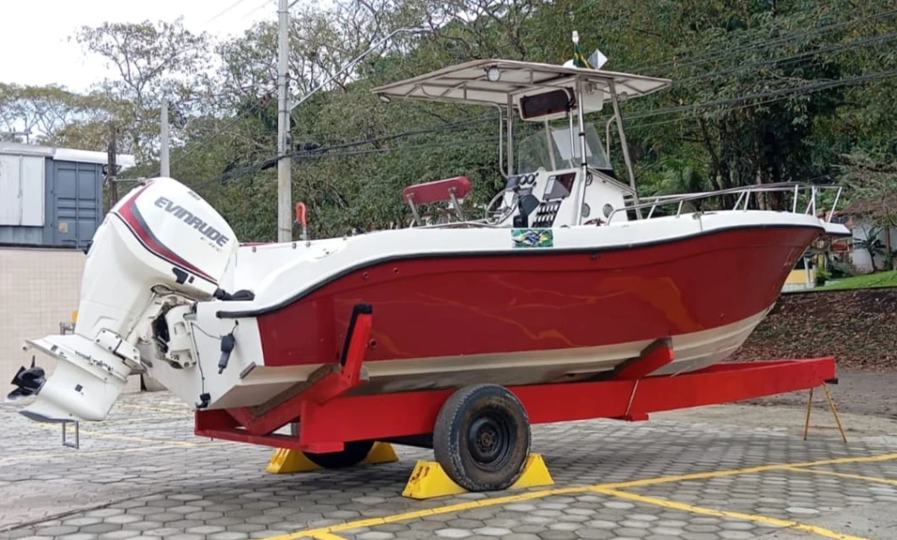 UMA COTA DE 5 POR R$ 50.000,00 • Modelo: Fishing 265 • Projeto e construção: Fishing Raptor • Ano de fabricação: 2002 • Comprimento: 26 pés • Capacidade nominal: 1+9 pessoas • Motor Popa Evinrud 225hp • Tanque de 200 litros de gasolina principal • Ancora com gincho • 2 baterias 75ah + 1 bateria de 105ah • Tomada com 2 USB + Voltímetro • Chave geral baterias motor/serviço • Bomba de porão • Chuveiro de popa com agua doce tanque • GPS com sonda para navegação e identificação de peixes • Tapete EVA • coletes • Boias circulares