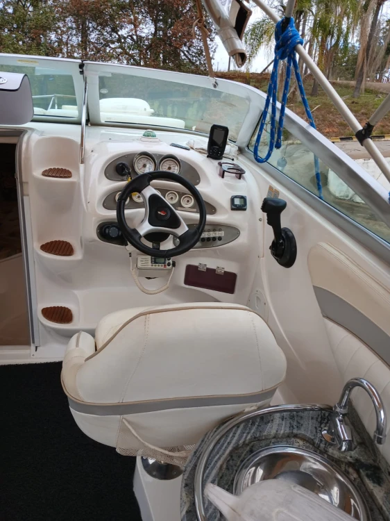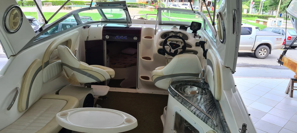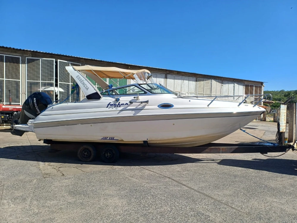 Focker 255 cabinada, motor Mercury 225 HP 4 T, carreta rodagem dupla, conjunto 2008, 530hs. Motor revisado há 2 meses. Cabine para 2 pessoas (pernoite), banheiro elétrico com pia, microondas, geladeira, ventilador, vídeo, todos os instrumentos de fábrica em perfeito funcionamento, sonar-GPS, som, autofalantes com subwoofer, salvatagem completa, âncora, farol com controle remoto, capota com cobertura total, baterias em bom estado bomba de porão e água doce.