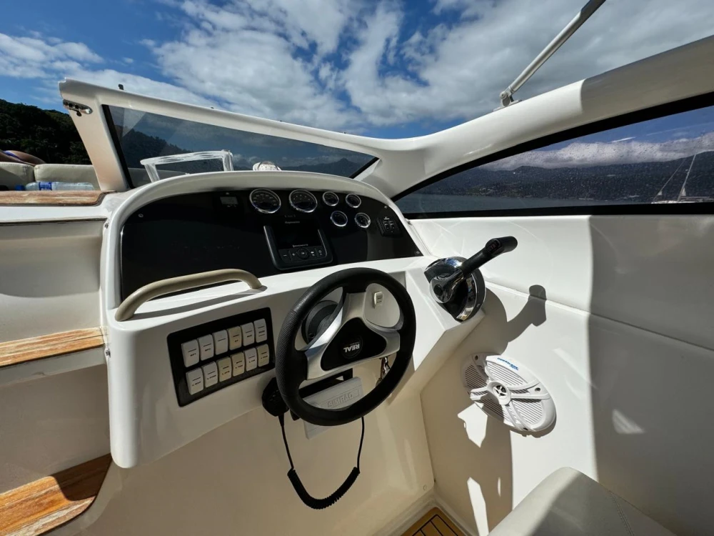 Lancha Real 330 Special EditionAno 2019, com todas as revisões feitas em concessionária. - motor gasolina mercruiser 350 - ar condicionado - gerador onan - boiler - tomada de cais - churrasqueira inox - toldo retrátil - plataforma submergível - carregador de bateria - geladeira - microondas - televisão - sonda - guincho elétrico - vaso elétrico - carreta