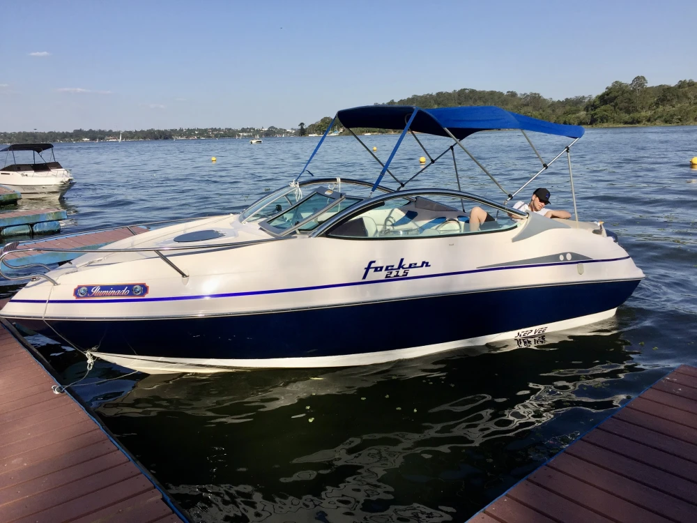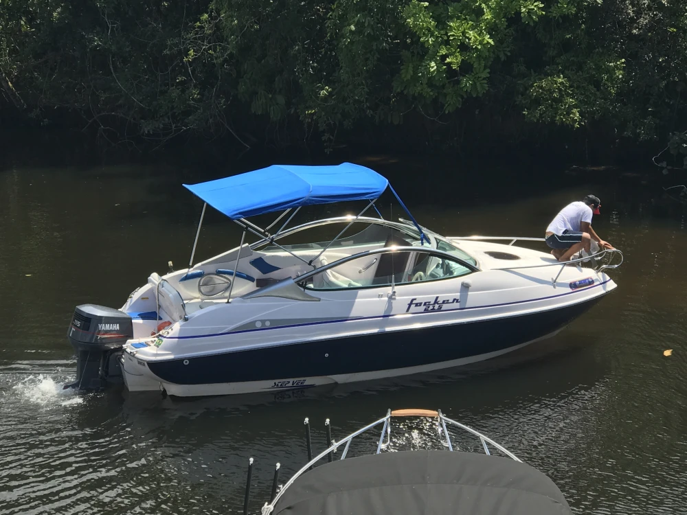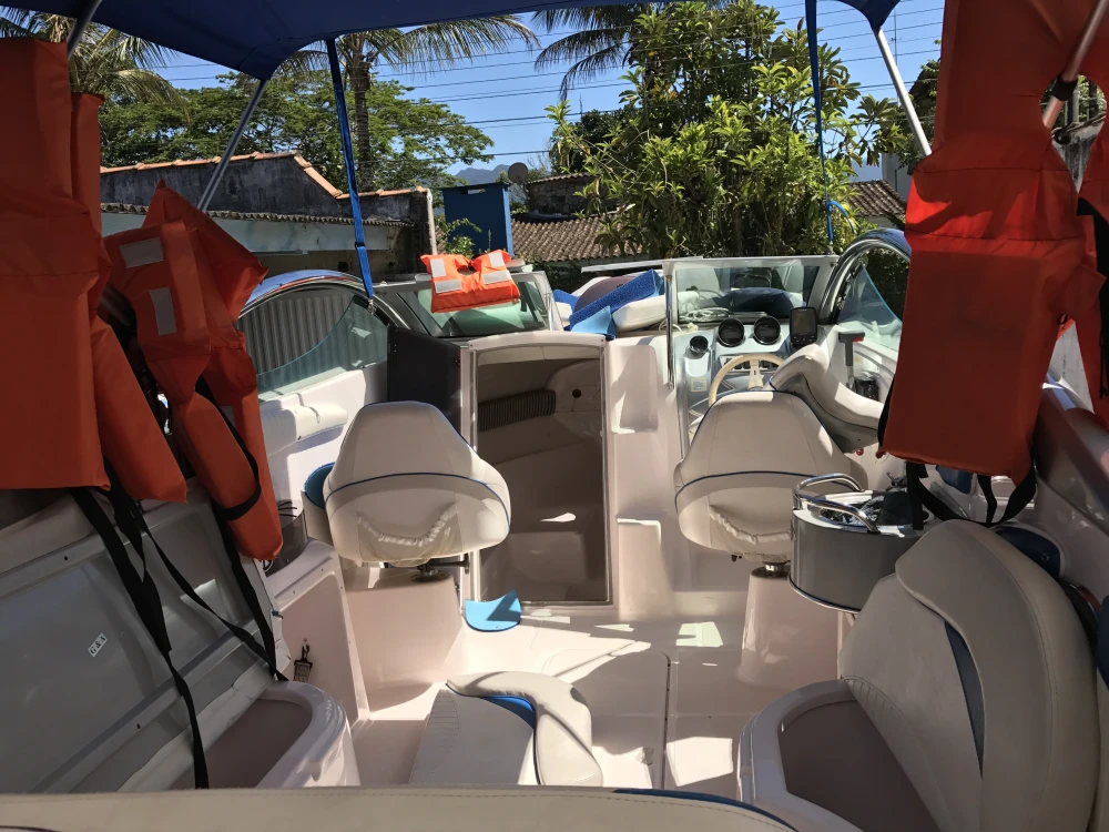 Focker 215 2009 Motor Yamaha 115 4V 2 tempos Motor com x horas Ano 2009 GPS Raymarine Dragonfly Sem guincho Duas âncoras Carreta rodoviária e encalhe com 4 pneus Toldo em alumínio Piso com tapete vinil azul claro Rádio VHF