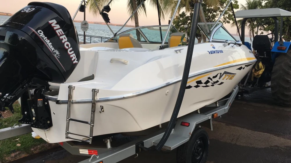 Lancha ventura 175, ano de fabricação 2010, segundo dono. Motor Mercury, injetado, 90 HP ano 2010, dois tempos com 170 horas, revisado, com troca de óleo de rabeta, rotor de bomba de água, filtro de óleo, filtro de combustível. Navegou somente em água doce. Equipada com: - carreta rodoviária licenciada, com estepe, e apta para viagens, - som, - duas baterias novas, - bomba de porão, - buzina, capota, - 02 defensas com devidos suportes, - lona de cobertura Tudo Impecável a qualquer prova. Guardada sempre em garagem coberta, encontra-se na Marina em Sabino, SP Valor : R$ 89.980,00 oportunidade única de ter uma lancha nova, econômica, e fácil de transportar por um preço muito bom.