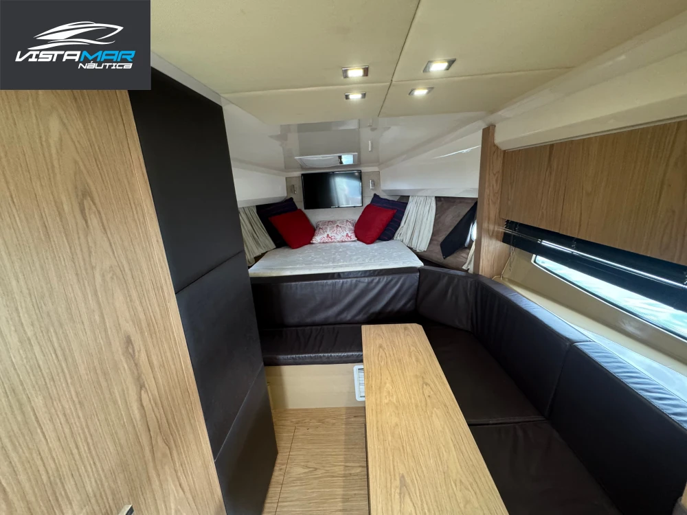 VISTAMAR NÁUTICA - Marina Aratu LANCHAS NOVAS E SEMI-NOVAS A ligação entre você e seu sonho. CASCO/PÉS: Sessa Marine C36 ANO CONSTRUÇÃO: 2013 PROA: Fechada CAPACIDADE: 11 + 01 ÁREA DE NAVEGAÇÃO: Interior MARCA DO MOTOR: Volvo Penta D4 POTÊNCIA: 2X 260hp ANO: 2013 HORAS: Aproximadamente 778h COMBUSTÍVEL: Diesel PROPULSÃO: Centro Rabeta ACESSÓRIOS: Hard top com abertura elétrica, bow thruster, flaps hidráulicos, inversor, geladeira 65 lts, cockpit, geladeira 100 litros dinete, microondas, fogão vitro-cerámico de 2 bocas, rádio vhf Raymarine, carregador de baterias, som Fusion com controle no cockpit + receiver + amplificador + subwoofer e com alto falantes marinizados Jl, tvs smart, display glass cockpit, garmin com gps, carta náutica original e integração com motores, gerador Mase diesel 7.1 kva, churrasqueira elétrica, pia com torneira quente/frio, chuveiro na proa e na popa (na popa quente/frio), mesa de madeira no cockpit, 02 aparelhos de ar condicionado 16.000 btus no cockipt e na cabine, guincho elétrico de 1000 watts, 06 defensas, carreta de encalhe 04 rodas com empihadeira, salvatagem completa e piloto automático. ESPECIFICAÇÕES TÉCNICAS: 02 tanques de combustível 470 litros, tanque de água doce de 300 litros, boiler 20 litros eletromecânico com misturador em todas as torneiras, tanque de águas negras 95 litros, pé direito de 1,90 m, iluminação em led com dimmer no cockpit, 03 luminárias subaquáticas azuis, banheiro com box, teka na plataforma de popa + cockpit, 04 bombas de porão, escada integrada com a plataforma, limpador de parabrisa bilateral, solário na proa, assento de piloto rebatível, 02 alarmes de CO nos quartos e alarme de alagamento no porão. PREÇO: R$1.150.000,00 VENHA NOS VISITAR E CONHECER ESTA E OUTRAS EMBARCAÇÕES NOVAS E SEMI-NOVAS. Agende seu testdrive VISTAMAR NÁUTICA ABERTO DE SEGUNDA A SÁBADO DAS 09H ÀS 17H E AOS DOMINGOS E FERIADOS DAS 08H ÀS 13H. CONTATOS E REDES SOCIAS: 071-99954-4411 (WHATSAPP) 071-98888-4411 (WHATSAPP) E-MAIL: vistamarnautica@hotmail.com INSTAGRAM: @vistamarnauticaoficial FACEBOOK: Vistamar Náutica SITE: www.vistamarnautica.com.br
