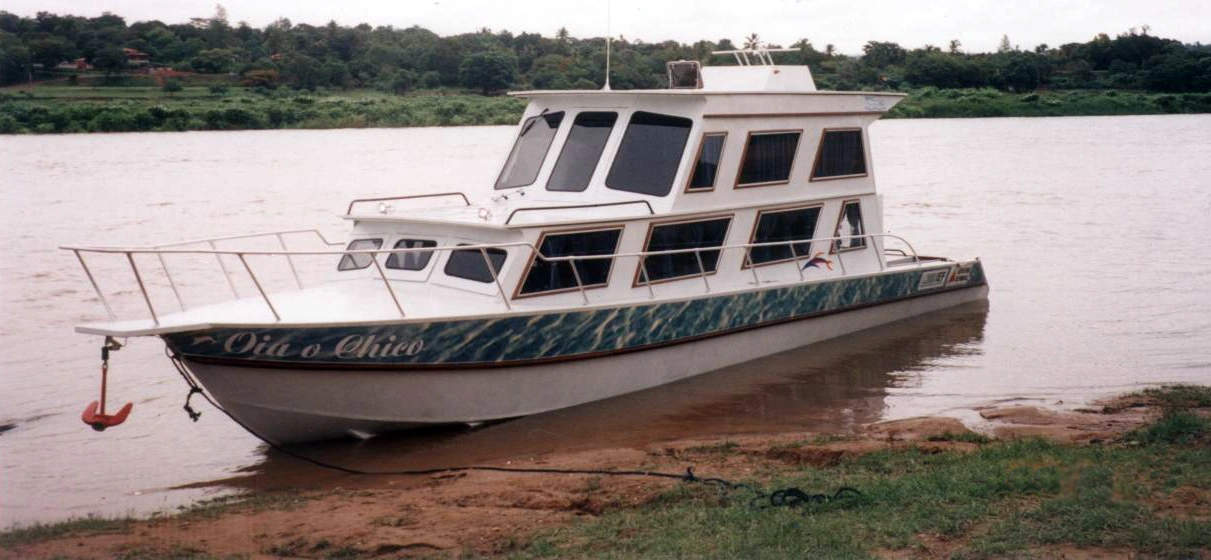 Lancha cabinada em duralumínio com flybridge, espaçosa, confortável e de ótima navegabilidade. Possui cockpit, cozinha, dormitórios, banheiro e solário de popa. Feita sob encomenda com arranjo interno customizado, conforme as necessidades do cliente. Segue de Pedro Leopoldo, MG para todo o Brasil. Tratar com Mara - Mundonáutico / WhatsApp 82 99153 3096. FOTOS ILUSTRATIVAS.