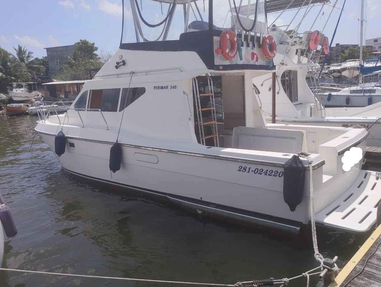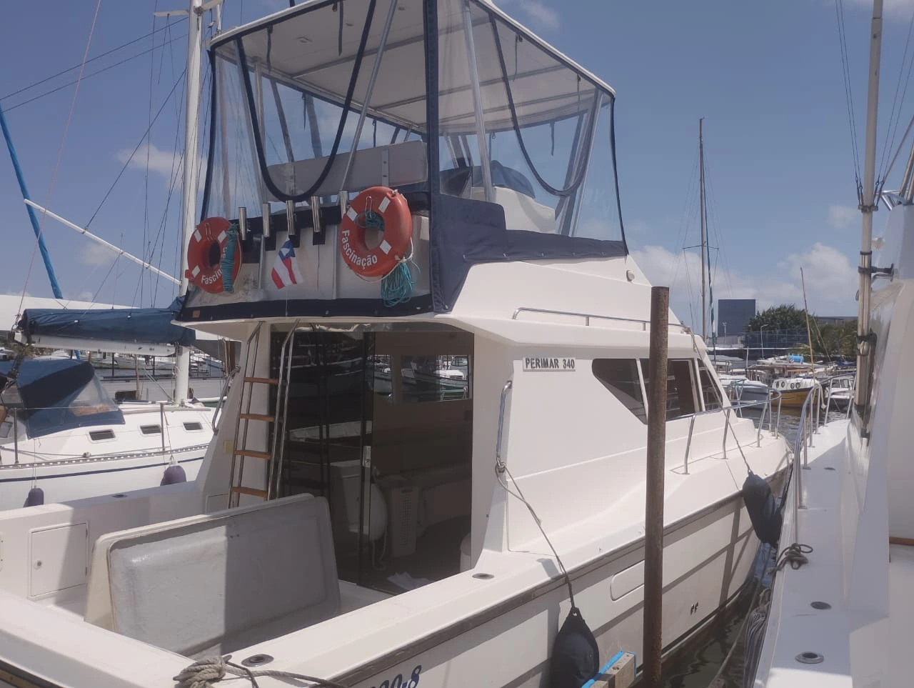 Lancha 34 Pés em excelente estado de conservação e super equipada. Com Fly Bridge e Sanefa novíssima. Ano de Fabricação 1992. Com excelente motorização: DOIS motores VOLVO PENTA D6 360 hp cada - só 1.000 horas de uso 1 – Classificação: Costeira 2 – Motorização: Volvo Penta D6 (2) 3 – Combustível: Diesel, 2 Tqs de 300L e 2 Tqs de 90L 4 – Painel de Instrumentação completo 5 – Sonda/GPS Raymarine Mod. Element 9HV 6 – Bussola 7 – Radio VHF – UNIDEN (Novo) 8 – Bombas de porão (2) 9 – Baterias (6) 10 – Defletor Radar 11 – Ancoras (1 Garateia e 1 Danfor) 12 – Bomba de água doce 13 – Bomba de água salgada 14 – Defensas (6) 15 – Quadro de Força 16 – Inversor de Frequência para frigobar e Tomadas 17 – Gerador Kohler Cap 6 KVA 18 – Ar-Condicionado (Salão e quartos) 19 – Frigobar 20 – Carregador de baterias 21 – Radio AM/FM 22 – Extintores de Incêndio (3) 24 - Cabos de amarração 25 – Fogos pirotécnicos 26 – Caixa de Medicamentos 27 – Sanefa no Fly Bridge (nova) 28 – Coletes Salva-vidas (16) 29 – Bar e Armarios 30 – Boias Circulares (2) 31 – Top cook 32 – Carpete 33 – Mesas de Centro (1 cockpit 1 salão) 34 - Bandeiras (2)