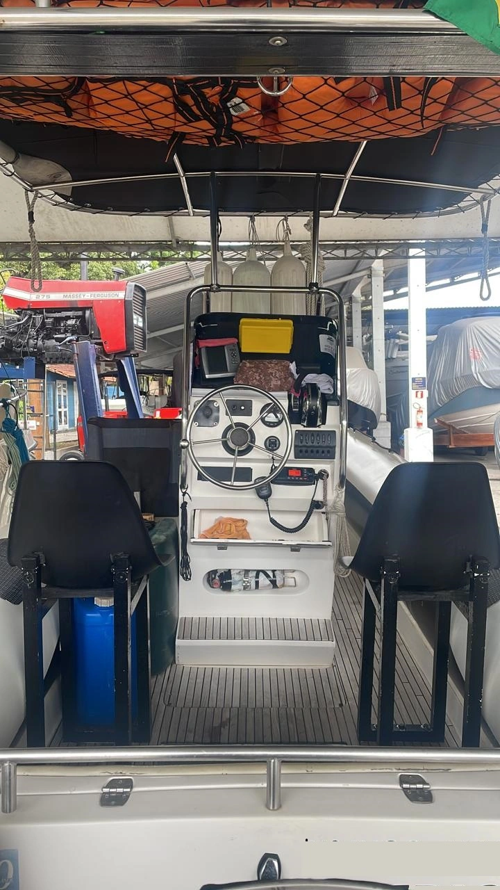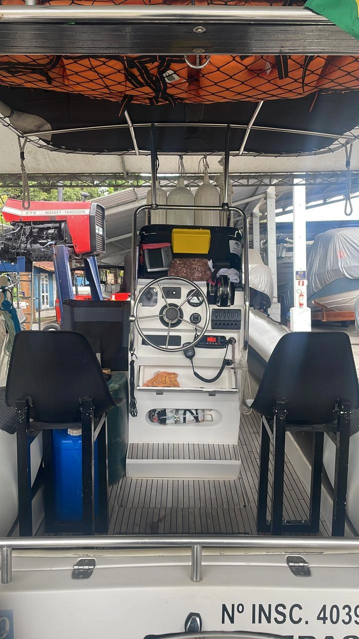 Lancha Zefir G 600 ano 2011. Motor de popa Mercury 150 HP 4T ano 2022 com 900 horas e todo revisado. Carreta de rodoencalhe em madeira. Capacidade: 1 tripulante e 10 passageiros. Acessórios: capota fixa; âncora de inox com cabo e corrente; âncora de ferro com cabo e corrente; bomba de porão 1.200 GPH; bomba de água doce; teka no convés; GPS Garmin; rádio VHF e coletes novos. A embarcação encontra-se em Ilhabela, SP e está bem conservada. Tratar c/ Mara - Mundonáutico / WhatsApp = 82 99153 3096.
