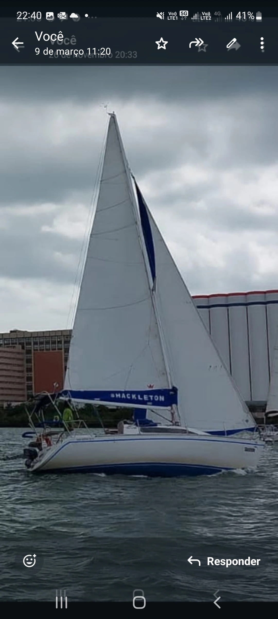 Versão tanto para cruzeiros quanto para regatas. Quilha torpedo. Barco versátil com alta performance, velocidade e conforto. Mês/Ano Setembro/1993 (Unidade 051). Classe de navegação - Mar Aberto. Projeto Nestor Volker. Vela mestra cruzeiro Elvstron em Dracon, Genoa 1 tri-radial Dracon North Sails, Genoa 3 e Genaker marca Delta. Pau de Spinaker. GPS Raymarine A60, VHF Fixo Uniden. Bússola. Painel solar com controlador de carga. Bateria estacionária Moura 105 A/h. Fogão inoxidável com 2 bocas e forno. Vaso Sanitário manual Nautos. Enrolador de Genoa Nautos e Gurupés. Pintura de fundo/polimento em fevereiro 2025. Motor Yamaha 2018 com alternador e rabeta longa, revisado em Setembro 2025. Tanque combustível interno fixo de 30L. Tanque água potável 85L conectado a bomba de pedal. Escada 3 degraus nova. Estaiamento/fuzis revisados em julho 2025. Luzes de navegação e estroboscópica em LED. 2 assentos externos à popa. Lazy Bag, Bimini, Dog House conservados. Âncora Bruce 7,5 Kg com 10 metros corrente galvanizada de 8 mm com 50m de cabo. 8 coletes certificados. Fumígenos para mar aberto válidos até dezembro 2026. Extintor. Iluminação interna em LED. Estofamento íntegro. Bomba de porão e automático marca RULE e Bomba d'água manual. 4 catacras com 1 manicaca Nautos. Policarbonato fumê de 8 mm novos nas 2 vigias laterais e 3 gaiutas móveis. Guarda-mancebos em inox sem capa plástica. Croqui e extensão de cana de leme. 8 defensas. Barco com seguro pago e válido até 27/12/2025. Contáto : 71-9-8159-0515.