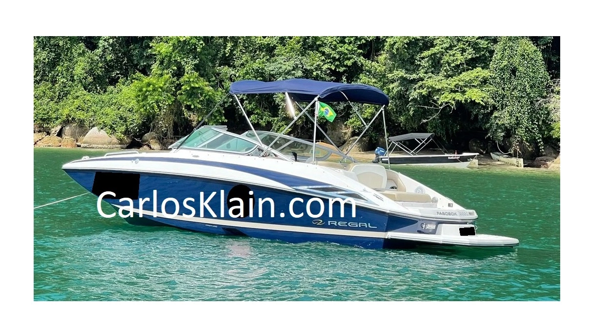 REGAL 2220 FASDECK - AVALIO PROPOSTA PRIMEIRO DONO Tipo CROSSOVER Ano.............................. 2011 Estaleiro......................... REGAL MARINE Modelo………………….. REGAL 2220 FASDECK Casco Material............... FIBERGLASS (GRP) Desenho Casco............. FASTRAC Comprimento.......... 6,80Mts. Boca......................... 2,60Mts. MOTORIZAÇÃO 1 VOLVO PENTA 300Hp Propulsão............... RABETA VOLVO DUO PROP PROA Poltronas com estofamentos / Mesa / Altofalantes / Ancora COCKPIT Posto de Comando: Plotter Multifunção GPS / Rádio VHF / Bussola / Son / Poltronas / Banheiro Compartimentado (Vaso Sanitário manual) POPA Altofalantes / Poltrona Solarium / Pranchada fiberglass / Chuveiro / Escada inox VARIOS Bimini / Capa 1 Bateria 1 Bomba de porão Carreta encalhe VALOR..... R$ 250.000.- MAIS INFORMAÇÃO: CARLOS MARCELO KLAIN Broker Náutico NITEROI / RIO / ANGRA DOS REIS / PARATY - RJ - BRASIL Facebook: @carlosmarceloklain Cel / Whatsapp +55 24 98851 7880 info@carlosklain.com CarlosKlain.com