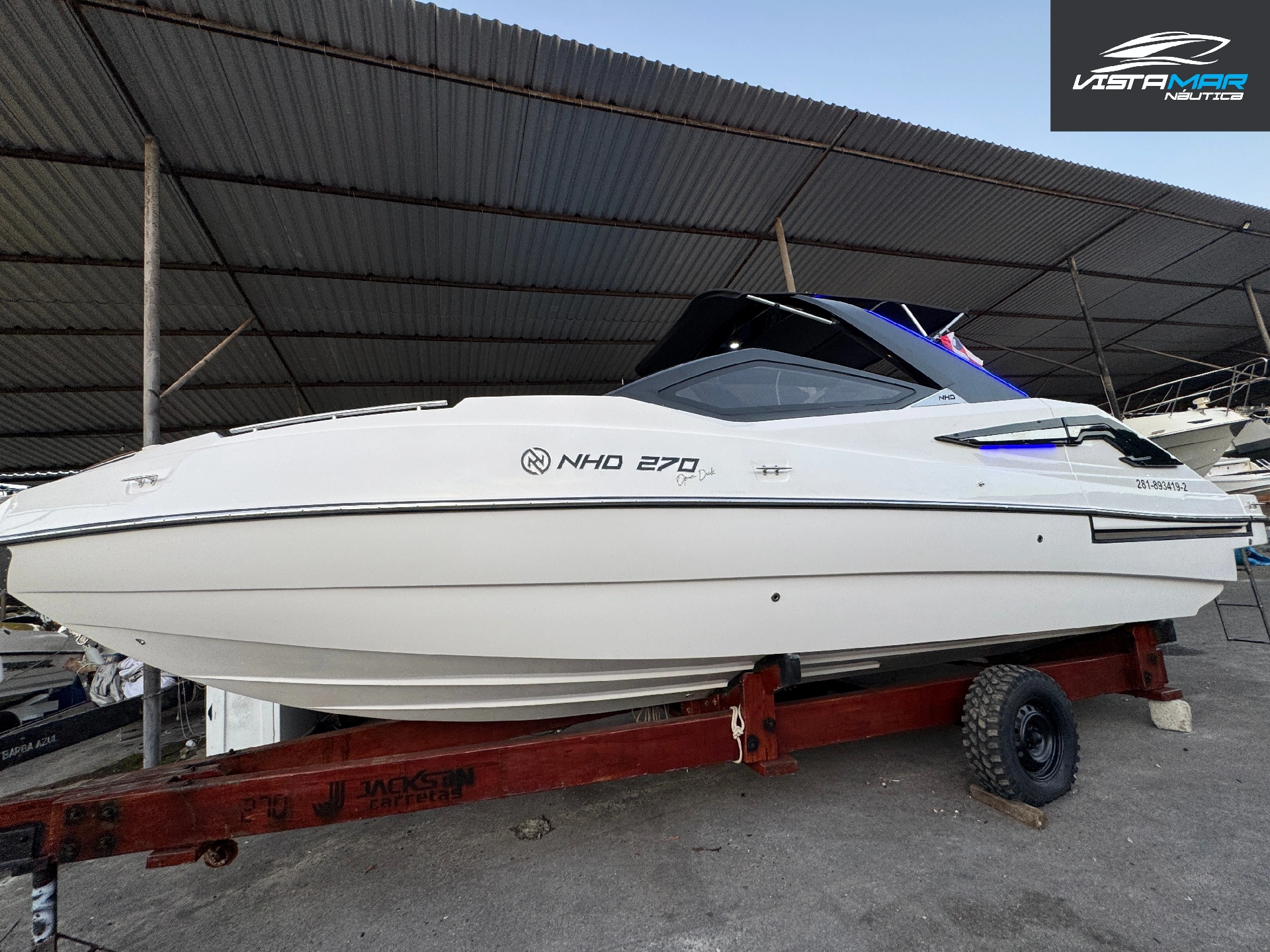 VISTAMAR NÁUTICA - Marina Aratu LANCHAS NOVAS E SEMI-NOVAS A ligação entre você e seu sonho. CASCO/PÉS: NHD 270 ANO CONSTRUÇÃO: 2024 ANO INSCRIÇÃO: Outubro de 2024 PROA: Aberta CAPACIDADE: 01 + 11 MARCA DO MOTOR: Mercury 4T Seapro POTÊNCIA: 250 hp ANO MOTOR: 2024 PROPULSÃO: Popa COMBUSTÍVEL: Gasolina HORAS: Apenas 180h Casco e motor na garantia Único dono. Pronta para navegar! ACESSÓRIOS: Salvatagem completa, piso em eva novo, guincho elétrico, som marítimo JBL Full novos (Aparelho + alto falantes), módulo, vaso sanitário elétrico, rádio vhf, carreta rodo encalhe, gps com sonda Garmin Striker 4 novo, espaço gourmet com churrasqueira e pia, buzina, toldo, capa de cobertura, full led novos, porta copos e open deck Nhd . VALOR: R$510.000,00 VENHA NOS VISITAR E CONHECER ESTA E OUTRAS EMBARCAÇÕES NOVAS E SEMI-NOVAS. Agende seu test-drive. VISTAMAR NÁUTICA ABERTO DE SEGUNDA A SÁBADO DAS 09H ÀS 17H E AOS DOMINGOS E FERIADOS DAS 08H ÀS 13H. CONTATOS E REDES SOCIAS: 071-99954-4411 (WHATSAPP) 071-98888-4411 (WHATSAPP) E-MAIL: vistamarnautica@hotmail.com INSTAGRAM: @vistamarnauticaoficial FACEBOOK: Vistamar Náutica SITE: www.vistamarnautica.com.br
