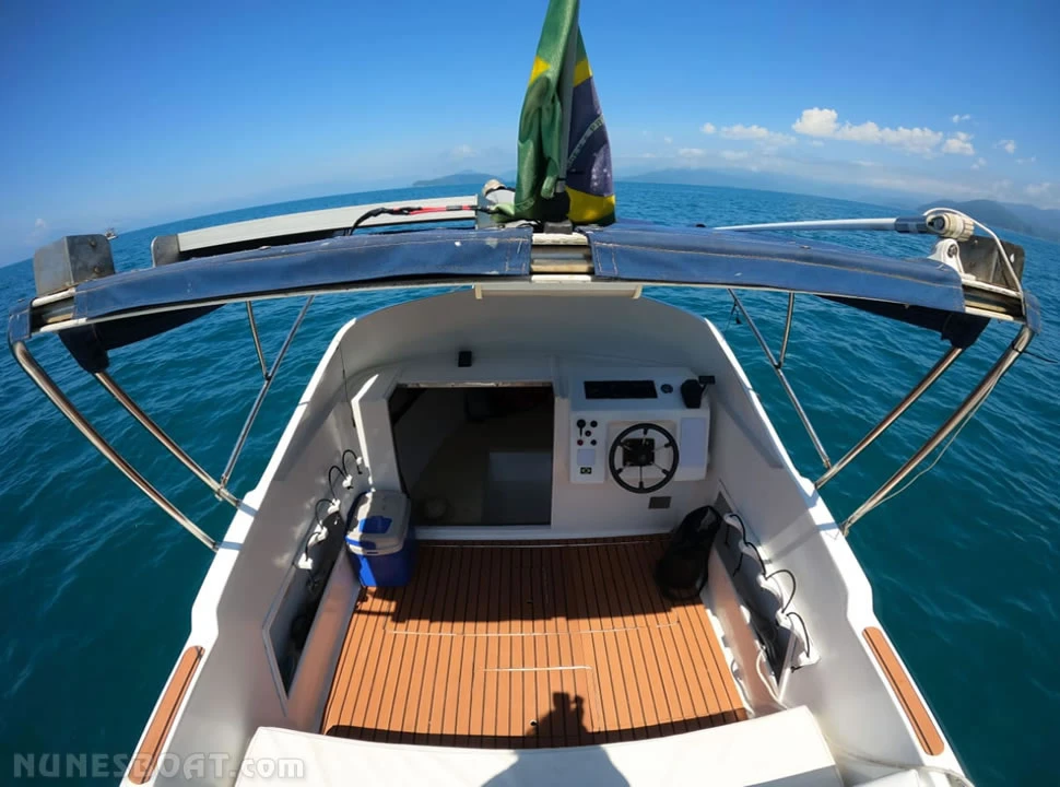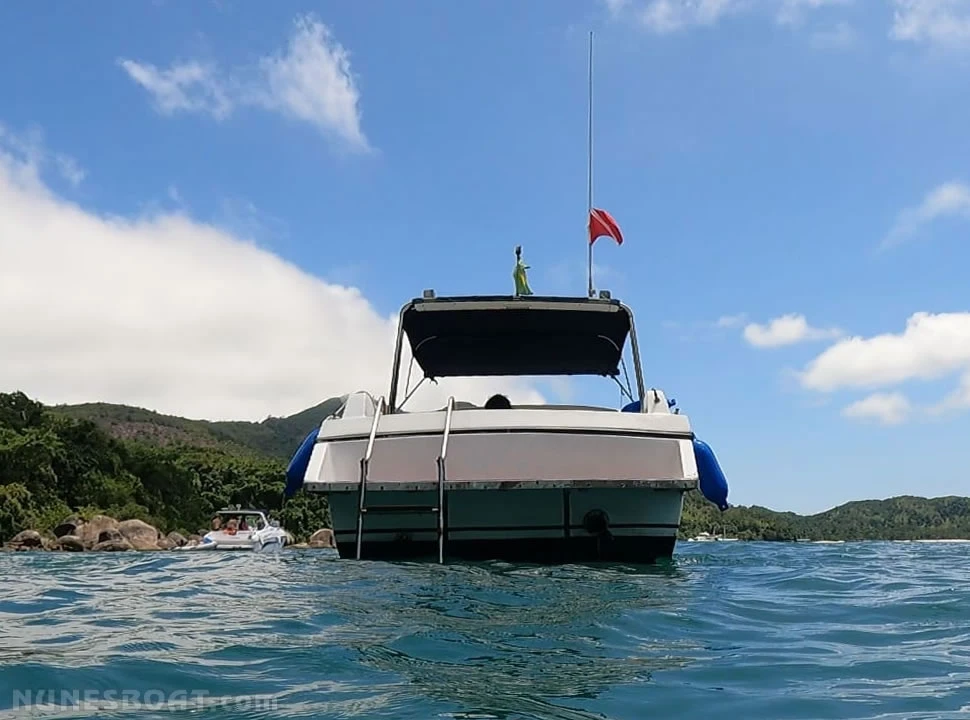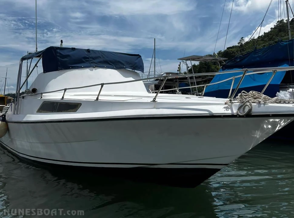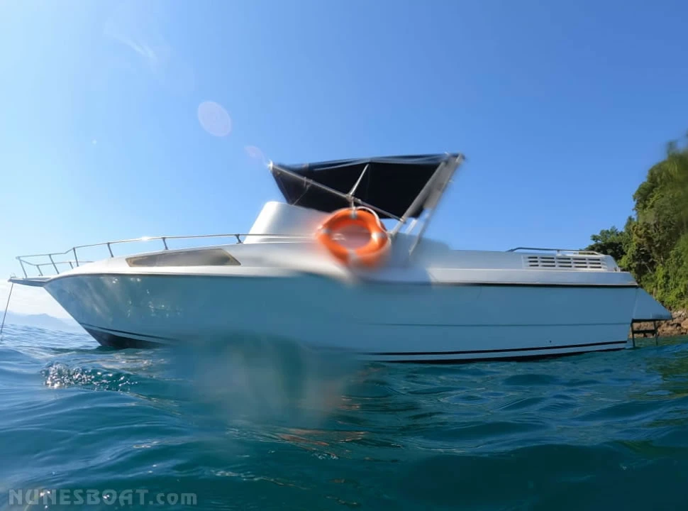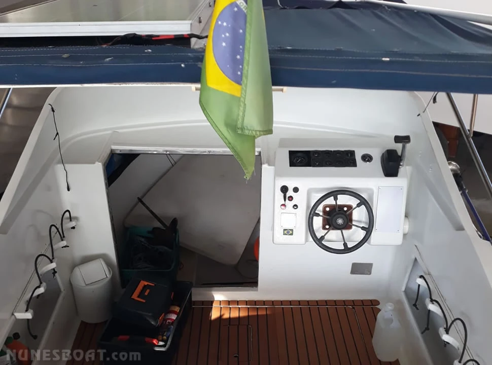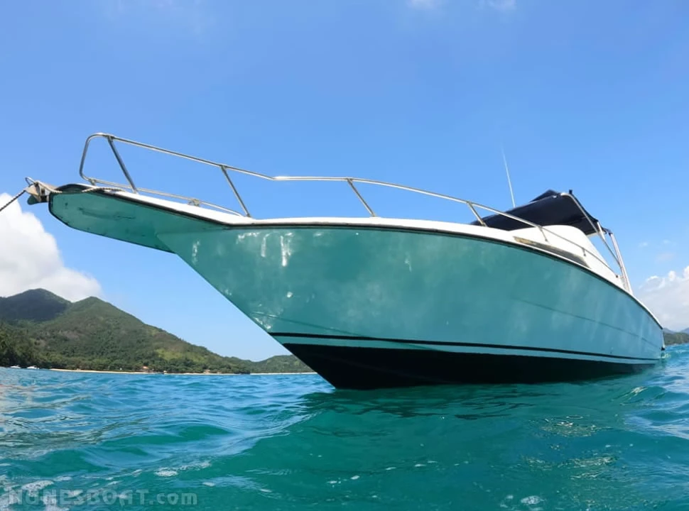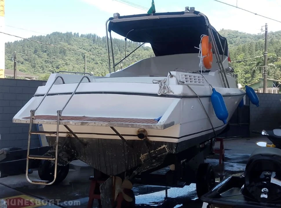 CÓD 2393 CIMITARRA 25: 1987, mercedes benz 352 210hp, diesel, 560hs de uso, 25 top e 15 cruzeiro, pé de galinha, âncora, bomba de água doce, (2) bombas de porão, bússola, capota c/fechamento total, carregador de bateria, carreta de encalhe, chuveiro de popa, (8) coletes, (6) defensas, direção hidráulica, extintor, geleira, gps c/plotter, placar solar, rádio vhf, sanitário comum, som, teca eva... F/c. Nunes (13)99706-0395