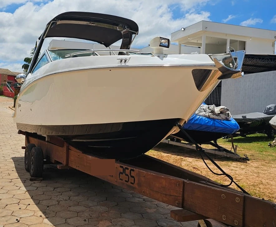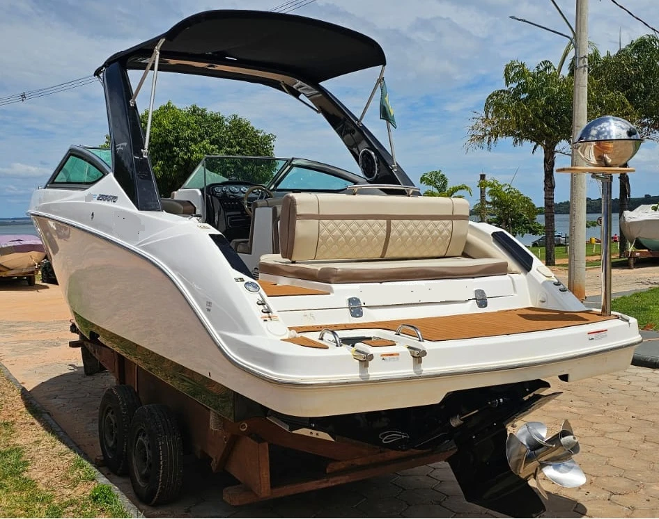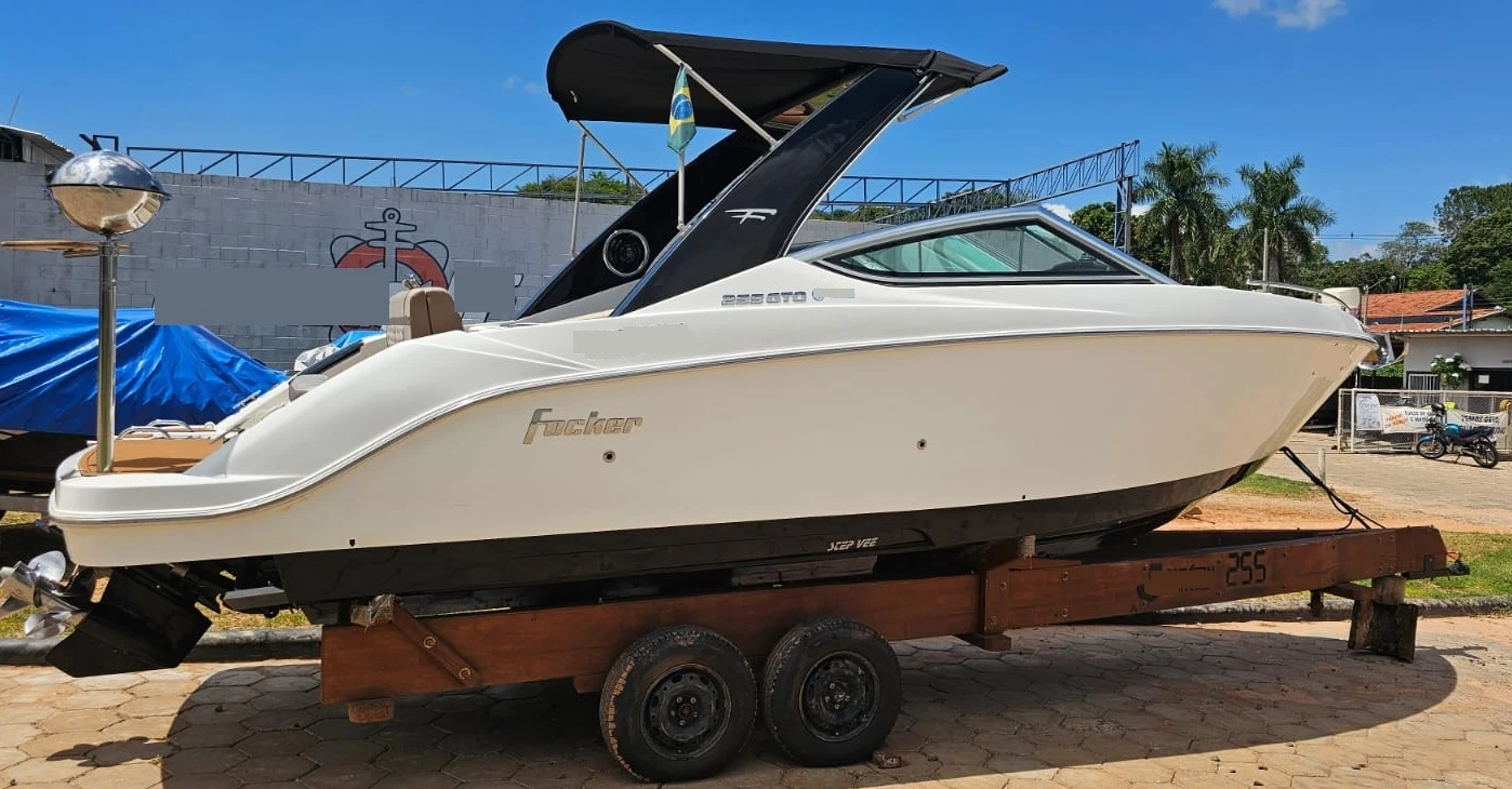 Lancha Focker 255 GTO ano 2020. Motor Mercruiser 6.2 / 300 hp com 177 horas. Rabeta Bravo Three. Capacidade para 12 pessoas. Inclusos: âncora Bruce. farol, bússola, som, GPS Garmim, churrasqueira a carvão, banheiro e carreta de rodoencalhe. Embarcação navegou somente em água doce e encontra-se em Avaré, SP. Tratar com Mara - Mundonáutico / WhatsApp - 82 99153 3096.