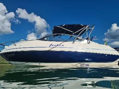 Lancha Ventura Comfort 250 ano 2024 com 11 horas. Motor Mercruiser 4.5 250 HP eletrônico. Inclusos: âncora, buzina de corneta, som com subwoofer e módulo de potência, marcador de combustível digital, kit EVA, toldo, exaustor de porão, suporte de guarda-sol na popa e carreta de rodoencalhe. Embarcação com pouco uso. Encontra-se em Avaré, SP. Tratar com Mara - Mundonáutico / WhatsApp - 82 99153 3096.