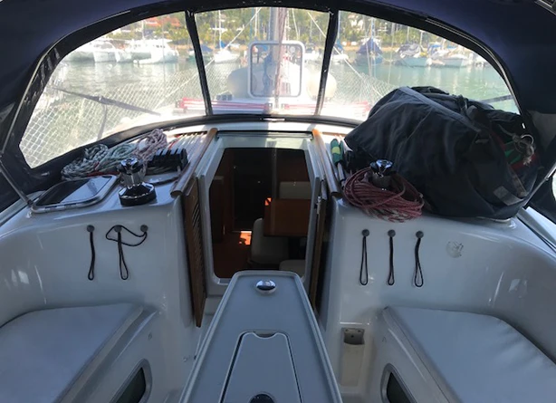 Motorização: Yanmar EJH4E 40 HP Layout: 3 Cabines / 2 Banheiros Velas: 1 Grande e 1 Genoa / 1 Balão assimétrico Genoa com enrolador North Sail Geneeker com camisinha Descrição: • Comprimento total: 11,82m • Comprimento do casco 11,23m • Largura total 3,91m • Largura do casco 3,91m • Capacidade de água doce 350L • Capacidade de combustível 200L • Capacidade frigorífica 130L • Potência máxima recomendada 30kw • Capacidade das baterias 2x105Ah + 2x 70Ah • Equipamentos Eletrônicos (Raymarine) • VHF (um fixo + um portátil) • Piloto aut. ST 6002 • Sonda ST 60+ • Wind ST 60+ • GPS • Chart Plotter Axiom – novo • Controle Remoto Raymarine • Acessórios e Equipamentos • Ducha para ancora Jabsco • Tv 43” Samsung- novo • Inversor Xantrex 1100- novo • Antena de TV Sha Shkespeare A23 • Boiler Eletrico -60L • Guincho Eletrico • Rádio vhf • Bimini com fechamento de popa e • 3 Ventiladores pressurizado lateral • GERADOR Onan 5 kV • Turco na popa em inox- novo • Ar Condicionado 2 - 12.000 Btus e 8.000 Btus Crusair+A37 • Fogão a gás 2 bocas • Geladeira/freezer 130L 12v • Bomba de porão com automático • Painel elétrico do wc, torneiras e • chuveiro todos água quente e fria • inclusive na ducha/chuveiro de popa. • 2 Saídas de som ext. + 2 internas. • 50 Metros de corrente 10mm com marcação ( 30 metros de cabo novo) galvanizada a fogo 2017 • Catracas Harken Painel • 1 leme hidráulico e manual • Teka somente nos acentos • Defensas • Eixo pé de galinha • 2 Bússolas. • Âncora 20kg em uso • Capotaria completa (cobertura geral, • doghouse e bimini com laterais, capa • do motor de popa e churrasqueira). • Suporte para 2 botijão de gás Glp de • 2,5kg cada. • Bolete de apoio • Motor de popa Yamaha 4hp
