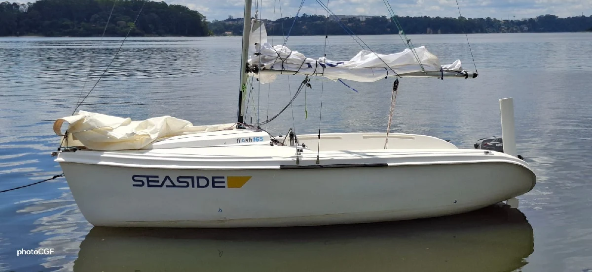 Flash 165 “SEASIDE” Craftec, 2006, Casco Nº17, Numeral 0617. Impecável, casco no gel original. Guardado em seco, clube na represa de Guarapiranga, São Paulo, SP. Atualizado em Maio 2024 na Craftec, com instalação de bolina nova com bulbo e sistema de içamento, suporte de motor em madeira e estaiamento totalmente novo. Buja original em bom estado, mestra original em bom estado, balão assimétrico em perfeito estado, mestra novíssima (Veleria 2Meios) com numeral. Biruta nova Nautos no tope do mastro. Lazy Jack novo com cabos, desmontável, sem saco. Manobra do balão completa. Manobra do gurupés desde o cockpit com cabos e mordedor. Mão de rizo com cabo único e mordedor. Contra-driça para buja, manobra desde o cockpit. Burro, cunningham e controle da esteira completos. TODOS os cabos novos, pré esticados, impecáveis, escotas, adriças, lazyjack, burro, cunningham, esteira, amantilho, controle do gurupés, contra-driça, amarras. TODOS os mordedores Nautos, funcionando. Saco fixo para balão pendurado na cabina. Sacos fixos para cabos nas laterais do cockpit. Inclinómetro na frente do cockpit. Cana de leme nova em madeira Cumuarú maciça. Extensão de leme nova Nautos, alumínio, 1m. Madre de leme original em alumínio reforçado. Leme de fibra original, tipo guilhotina. Suporte de motor novo em madeira. Motor de popa Hidea 3hp, 2T, novíssimo, com capa original. Menos de 3h de uso. Carrinho pra motor, novíssimo. Galão de plástico vermelho, específico para gasolina, 5L. Carreta de encalhe/rodoviária (sem placa, nem freio, nem IPVA) melhorada com viga transversal para apoio do bulbo, descansando os moitões da polia quando em seco. “Funil” de madeira revestida em feltro para dirigir o bulbo durante o encarretamento. Capa de lona Carlito, recosturada, cobre 100%. Toda a documentação na Marinha e seguro obrigatório em dia, em meu nome. NADA a fazer, só içar velas e velejar a passeio ou regata. R$ 51.000,00 à vista. Só negocio após visita ao barco. Só venda. Não tenho interesse em trocar.
