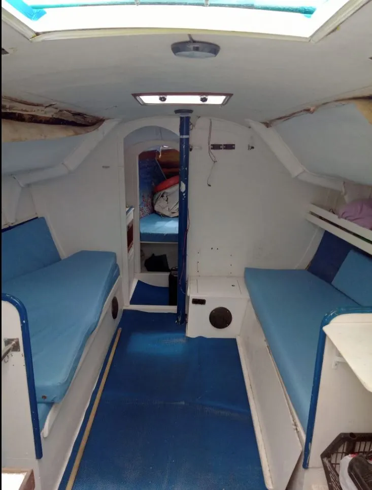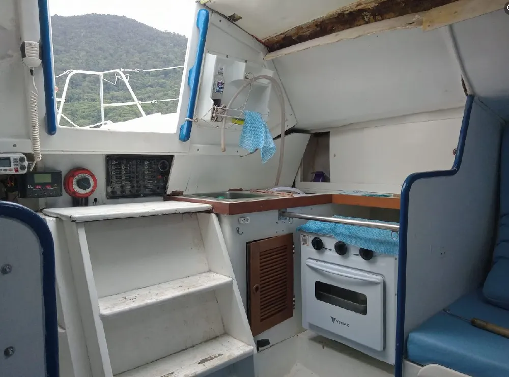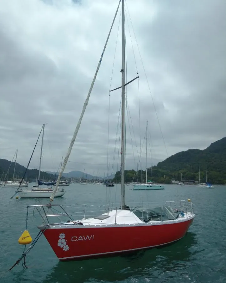 Contato : Pedro Henrique : 12 99678-0535 Saco da Ribeira Ubatuba Com Poita na Ribeira Ubatuba CAL 9.2 Comprimento total 9,15 metros Calado 1,70 metros Boca 3,15 metros Pé Direito 1,80 metros Ano 1989 Classificação Mar aberto Tripulantes 01 e 05 passageiros Reforma externa e motor seg. semestre de 2021 Motor Yanmar 2GM20C - 2 CIL - 16 hp - Diesel Rabeta Yanmar SD20 Hélice duas pás Velas: Mestra, Genoa com enrolador Nautos Tanque Água 100 litros tipo bolsa Tanque Diesel 25 litros Pirotécnicos Vencidos Bomba de porão: uma automática e outra acionamento manual Fogão duas bocas com forno Bujão de gás P2 Caixa de gelo de 20 litros Bomba de água pressurizada Banheiro com vaso elétrico Âncora Bruce de 10 kg 1 bateria 100 A Rádio VHF