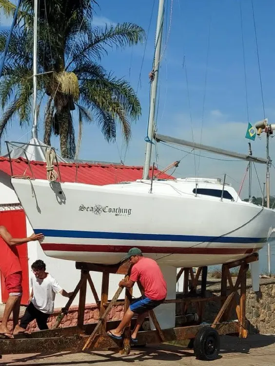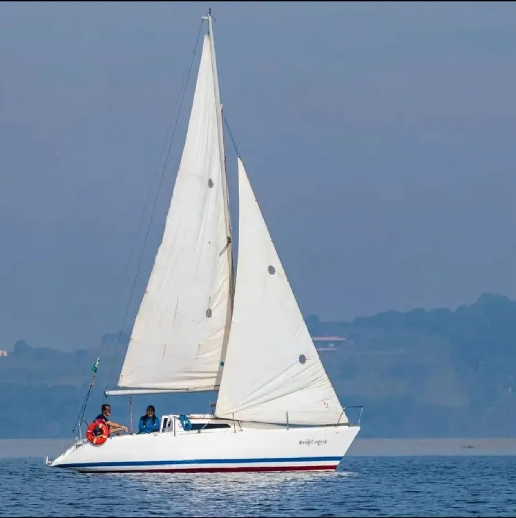 Lindo Brasília 23 Fabricação 1981 Carreta com degraus e guia lateral pintada e reformada em agosto/2025. 4 velas com capas individuais em lona (sem balão) 1 âncora Placa solar Bateria estacionária Conversor Banheiro químico Estofamento novo Pau de spinnaker Croque Boia salva vidas Catracas e ferragens Defensas Acessórios e ferragens extras Está na Guarapiranga, SP Estudo propostas e permuta por carro ou moto