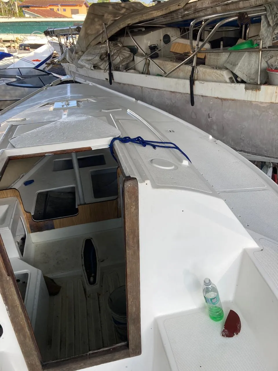 Brasília 23 recém pintado, fundo em epóxi cobre, deck no gel, todas as madeiras envernizadas, colchonetes em bom estado, elétrica ok, rádio, mastro com esticadores Nautos. Os equipamentos foram retirados para a pintura bem como todas as madeiras internas para o verniz, falta montar Vela mestra, Genoa e genaker, cabos em bom estado. Barco em Ubatuba, Saco da Ribeira. Venda por falta de tempo para montar.