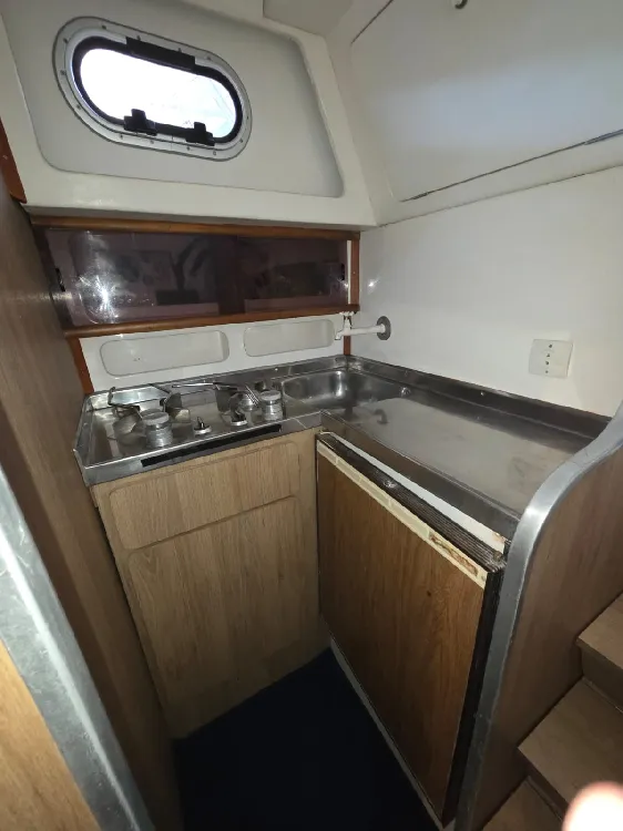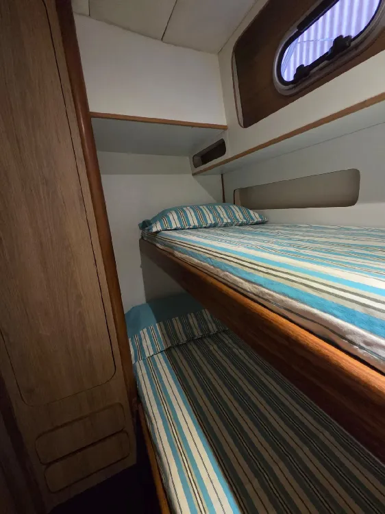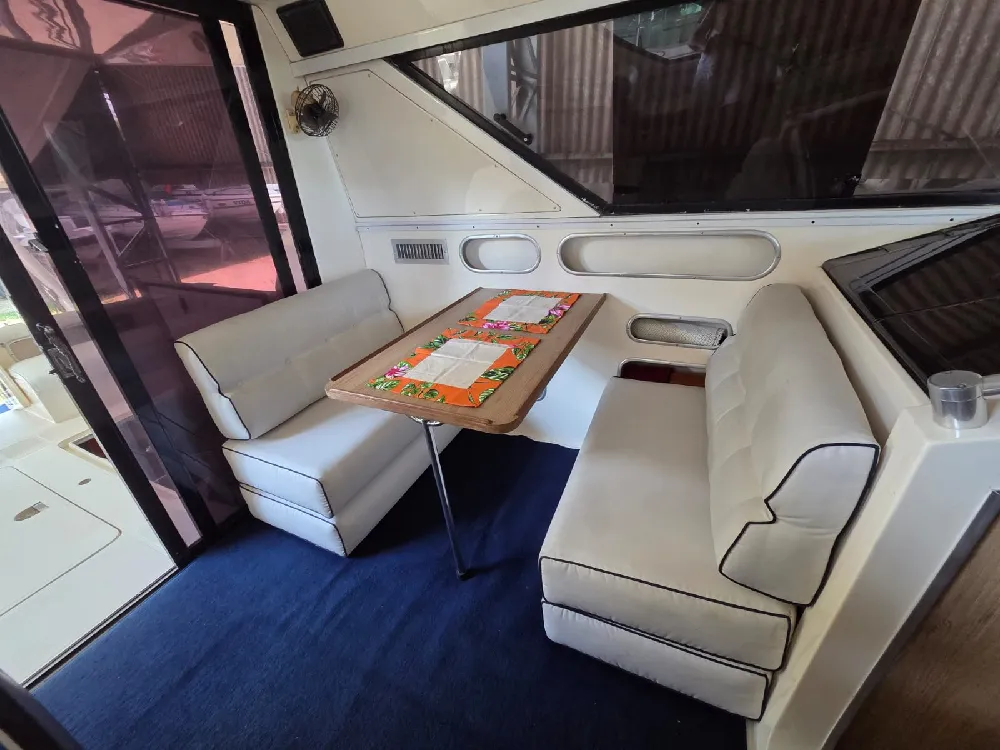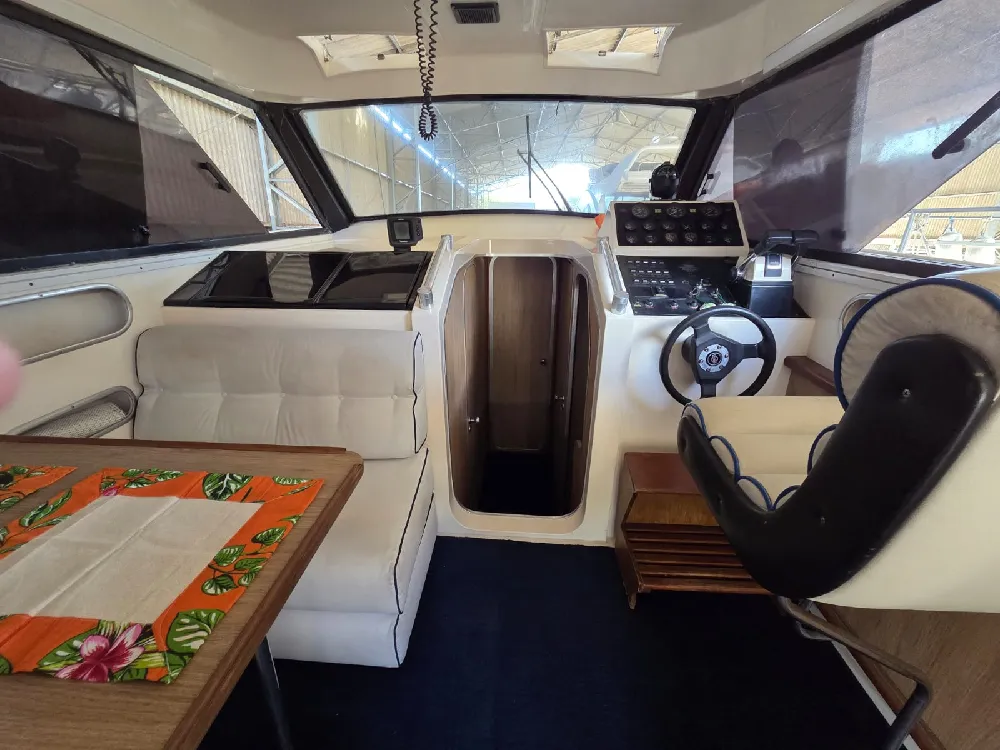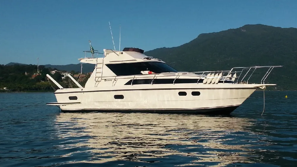 Oceanic 32 Plataforma alongada 2 Motores Mercedes-Benz 366 Diesel Pé de galinha Boiler Radio VHF Bomba de água doce 3 bombas de porão 2 bússolas 2 âncoras Flap hidráulico Porta de acesso na popa 4 baterias Bote com motor Carreta de encalhe