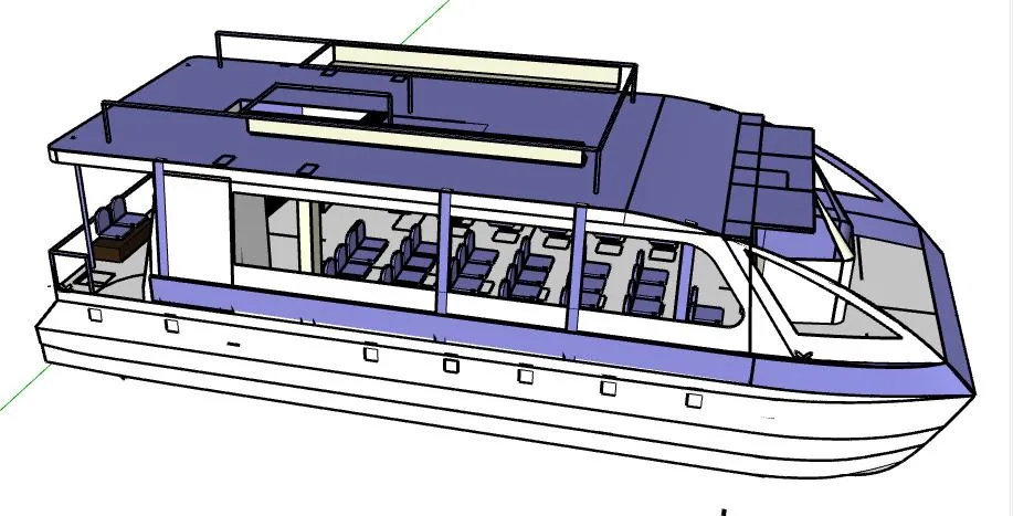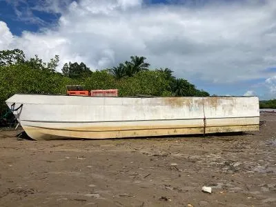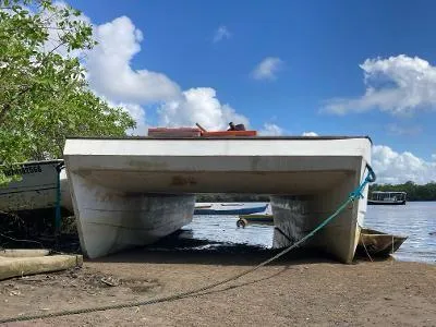 VENDO Casco Tipo Catamarã construído em fibra de vidro, com comprimento total de 12.500 mm e 5.600 mm de boca e mais de 60 metros quadrados de convés. CARACTERÍSTICAS GERAIS Comprimento total 12.500 mm. Boca 5.600 mm. Área do convés, 61,6 m2. Pontal 1.400 mm. Calado 500 mm. Largura canoas 1.200 mm. Área de motor 3m2 (X2). Ano Fabricação 2013. Cor Branca. INCLUI Projeto, para um barco para passageiros com capacidade para 48 passageiros + 2 tripulantes. Pendente de atualização e apresentação ante a Marinha do Brasil para a obtenção da licença de construção. Projeto, de fim de curso de Arquitetura Naval por alunos da Escuela Técnica Superior de Ingenieros Navales de la Universidad Politécnica de Madrid Espanha. Nesse último projeto, a capacidade foi ampliada a 54 passageiros + 2 tripulantes, tendo sido gerado vasta informação sobre as possibilidades e versatilidade do casco. Nesse ultimo projeto foi utilizado o programa informático de modelagem Rhinoceros. Casco robusto, inicialmente previsto para ser um barco escola de pesca, para o qual, foi utilizado de forma abundante o sobre dimensionamento de materiais, resina e fibra para o reforço estrutural para navegação em mar aberto. Também inclui mais de 50 m2 de chapa de fibra de vidro reforçada com grossuras que variam de 6 a 10 mm, essas chapas, faziam parte de uma estrutura existente que foi removida. Material suficiente para acometer as obras de construção da estrutura de uma embarcação de passageiros.