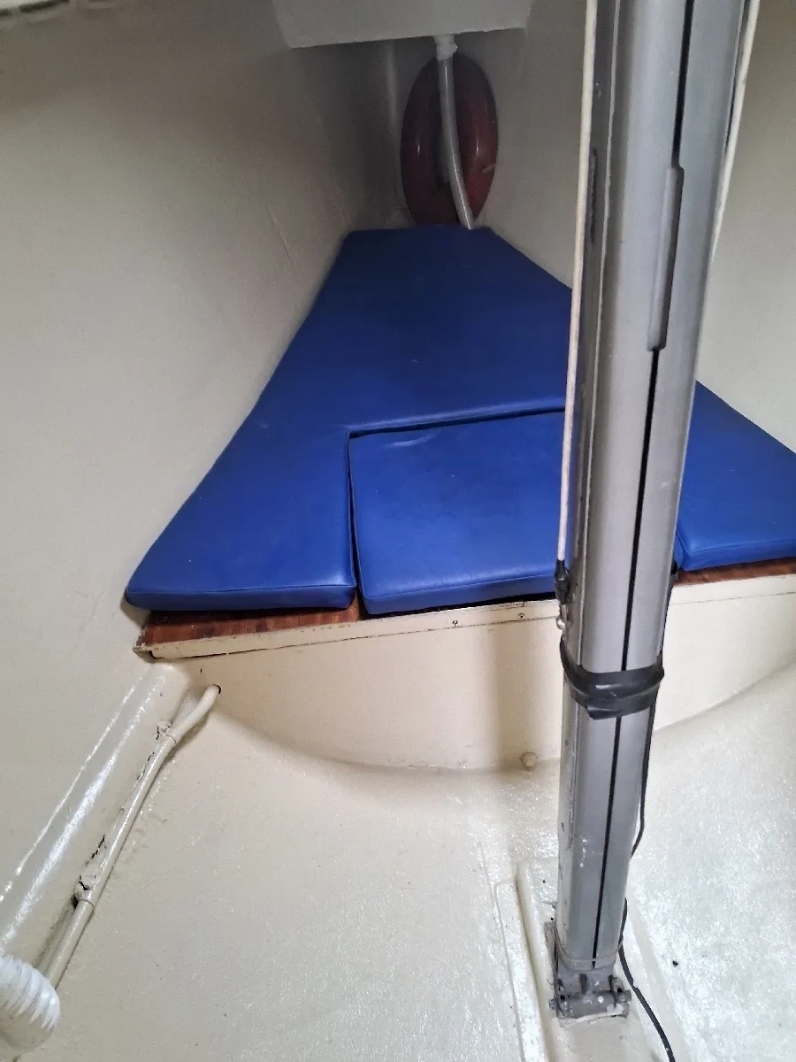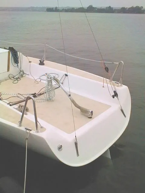 Completo e pronto para velejar. Projetado para regatas com ventos médios ou fracos e pequenas ondulações. Capacidade para cruzeiros de curta duração ou “daysailer”. Excelente na orça, rápido com excelente estabilidade e manobrabilidade. Amplo cockpit com boa ergonomia para manobras mais complexas e 3 conjuntos de escoras . Aparelhado para regatas, com adriças e escotas completas, pau de spi com amantilho/ contra amantilho/moitões de retorno/ 4 stoppers e sistema de “barberhauler”, controle de esteira e “cunningham”. Tripulação recomendada para regatas - 4 ou 5 pessoas. Ancora com amarra e cabo de fundeio, cabos de atracação. Ferragens e aparelhos de laborar HARKEN, NAUTOS, HORSEMAN, 2 manicacas, 4 catracas (auto self). Construção on/off; confeccionado em tecido biaxial CM1808 composto de fibra de vidro. Totalmente laminado à mão. Leme interno com cana, quilha em aço inox com bulbo em chumbo (400 kgs) Tanque anti-colisão na proa (peak-tank) Tanque flexível (PLASTIMO) com 100 litros de água doce conectado por bomba elétrica a uma pia no compartimento de proa. Ano de construção – 2001 Deslocamento – 1200 kg LOA – 25 pés Carreta metálica com rodízios emborrachados na frente e pneus automotivos na traseira. Escada em alumínio com 3 metros para acesso ao convés. Suporte desmontável na popa para motor Motor de popa de 3,5HP Mercury; todo funcional, com cerca de 65 horas de funcionamento. Armação – fracionada com mastro passante, cruzetas duplas, 1 forra de rizo, pau de spi. Velas – 1 mestra (prolan, full batten) , 2 genoas (prolan e dacron, para translado e regata), 1 spinnaker(simétrico, nylon); todos em bom estado de conservação. Acessórios Bateria de 12 v flutuando permanentemente com painel solar e regulador de tensão controlados por quadro de comutação. Bolsa de guarda de material além de 2 paineiros na parte intermediária da cabine. Material de salvatagem (coletes salva-vidas) Cooler para bebidas e alimentos Croque e 4 defensas Comunicações – Transceptor VHF Solara Navegação – Ecobatímetro e Odômetro, Bussola de antepara, Luzes de navegação (BE e BB), Luz de Tope e Luz de Alcançado, Mesinha de navegação Aguada – tanque flexível com capacidade para 100 litros embutido na seção de vante. Habitabilidade – Estofado de proa em V , estofados laterais a meia-nau, pia com torneira elétrica, mesinha de refeição, luzes de interior na proa e a meia-nau, fogareiro de 2 bocas e sanitário portátil