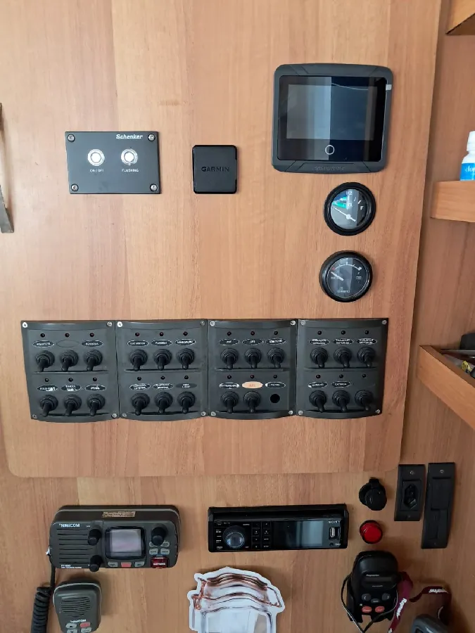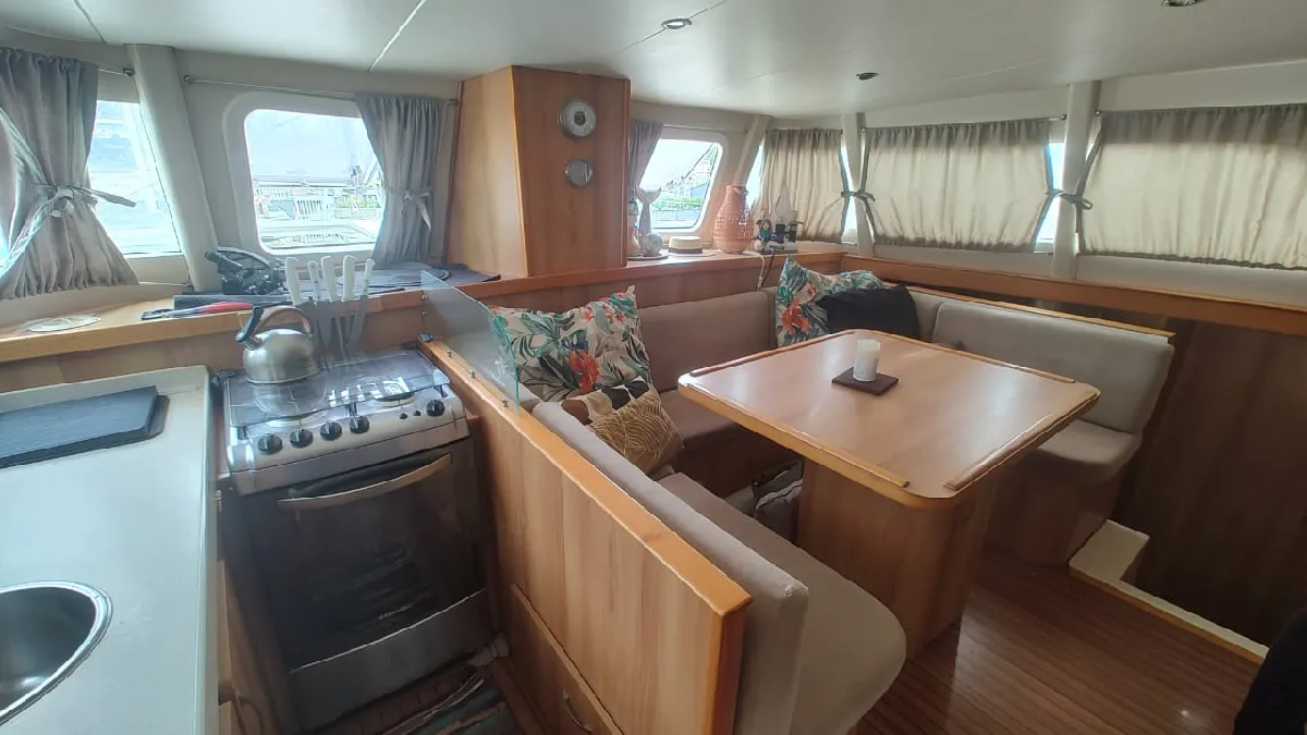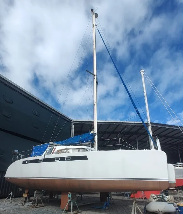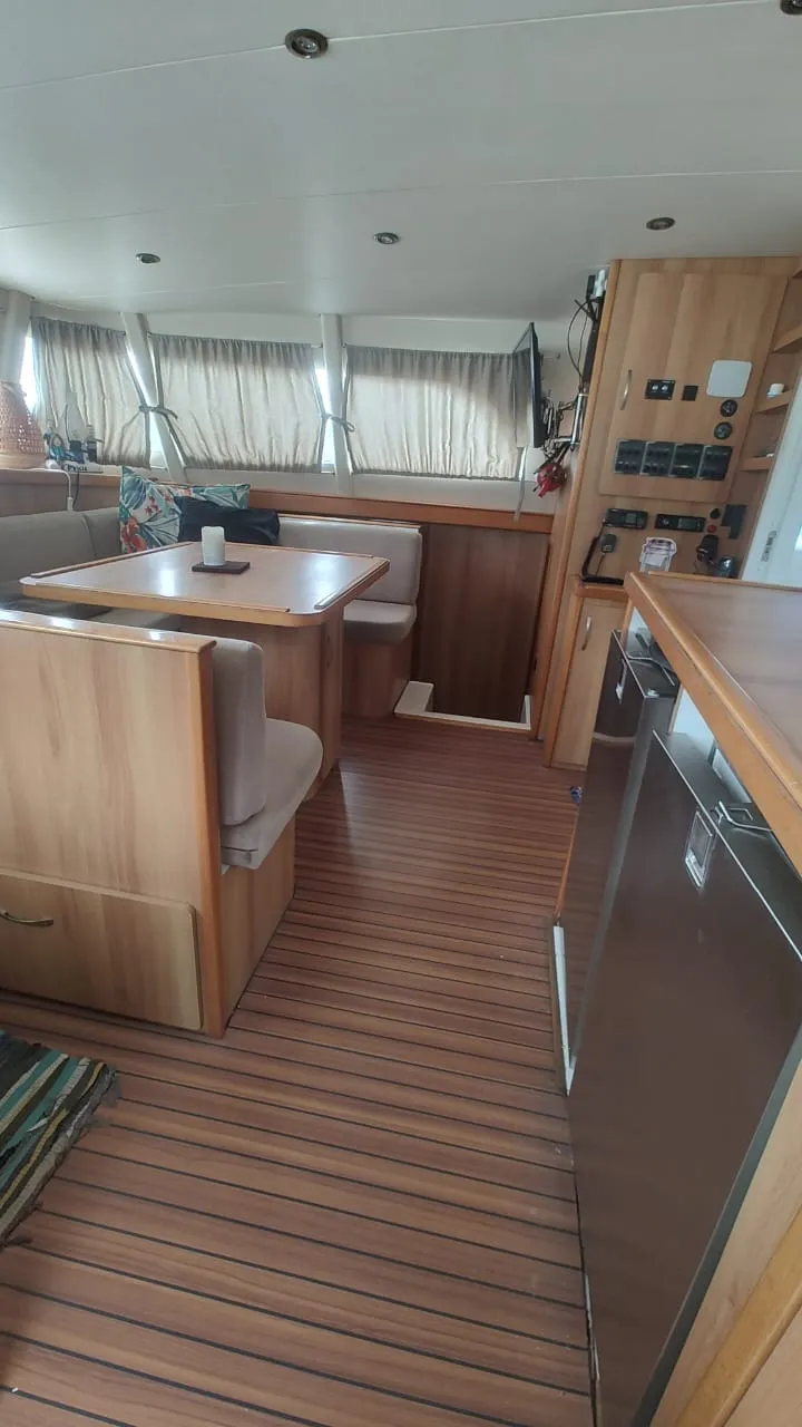 Modelo: OCEMA 42” Fabricação DOLPHIN Ano de construção: 2013 (Julho) *LAYOUT* 04 Cabines 02 Banheiros Salão Cozinha *MOTORIZAÇÃO* 02 Motores Yanmar 3M30 29 HP Diesel Transmissão: Rabetas Yanmar SD20 03 Exaustores comparento de 12v Tanque Combustível: 500l Revisão geral Motores 2025 *VELARIA / MASTREAÇÃO* Velas mestra NorthSail Genoa NorthSail Tormentinha de 10m2 Spinakker assimetrica Enrolador de genoa PROFURL C430 Mastreação Perfil do mastro e da retranca de fabricação belga montado pela Farol 01 Catraca elétrica ANTAL W48 com Motor QUICL 700W 03 catracas manuais ANTAL W44 Moitões e Stoppers ANTAL – 10 unidades Cabos novos Adriças são de Dyneema *ELETRÔNICOS* GPS MAP GARMIN 1243 CSV de 12 polegadas Touch Piloto automático RAYMARINE ST 70 com controle Remoto Profundímetro e estação de vento SIMRAD IS20 Rádio: VHF NAVICON RT 650, com PTT remoto 02 VHF portátil UNIDEN. AIS Navicon (VHF) recebe e emite Sistema hidráulico lemes VETUS com macacos 30-175Kgm Bússola *ELÉTRICA* 02 aparelhos de ar-condicionados (marítimos), marca MERMAID. Sendo um de 12,000 e 16,500 btus Controlador de placas MPPT Victron linkpro 05 Paineis solares cada 140W Kyocera 02 baterías lítio Mastervolt 400Ah cada Transformador Terramar modelo MBM 5 KVA Bivolt Gerador: 3.2 KVA – marca DEXTER POWER 30 EI Gasolina Carregador de baterias Mastervolt 12-100 para as baterias de Litio e um de 60 AMPS dedicado às baterias dos motores Inversores: de 4.000 watts pure senoid *HIDRÁULICA* Dessalinizador Tanque de água doce: 1150l 09 Bombas de porão de 750 GLS com automático 04 Bombas de porão reservas (na caixa e não instaladas) 01 Bomba de água pressurizada Shurflo 1.9 GPM 01 Bomba de água pressurizada Shurflo 4.2 GPM Boiler 30 litros Vasos sanitários Ocean elétricos Passa cascos e registros trocados Truedesign *ANCORAGEM / FUNDEIO* Guincho de âncora LOFRANS elétrico 1500W 01 âncora Rocna original 27kg 02 âncoras Bruce 30kg 100 m de corrente 10mm sendo os primeiros 30m de inox 10 Defensas 02 Boias circulares 02 Facho Holmes *SALVATAGEM / APOIO* Balsa salva vidas (vencida nov/2024) 01 Bote rígido 2,8m 01 Bote inflável com fundo rígido Motor popa Mercury 5Hp 10 coletes salva-vidas tamanho adulto 02 coletes salva-vidas tamanho infantil *INFORMAÇÕES ADICIONAIS* Pintura de costado 2025 Pintura de fundo Coopercoat Original (2025) Watermaker Schenker 30l/l Geladeira Elber 12v 120L Freezer Elber 12V 100l Fogão Electrolux 4 bocas e forno 01 TV 32’ Samsung de LED 01 TV 29’ LG de LED Sistema de som: 02 CD Player automotivo Sony 04 autos falantes marinizados Escada de popa