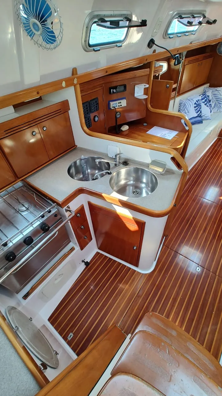 Modelo: Delta 36 Fabricante: Delta Yachts Projeto: Nestor Volker Versão Cruzeiro Boca: 3,66 m Calado: 1,65m *LAYOUT* 02 cabines Salão Cozinha 01 banheiro *MOTORIZAÇÃO* Motor Yanmar 29 HP Rabeta SD20 Hélice nova 2023 Revisão do motor e rabeta em 05/24 *VELARIA / MASTREAÇÃO* Vela grande Dracon Olímpic Sails Genoa 2 *ELETRÔNICOS* Piloto automático Raymarine Profundímetro Raymarine Wind Raymarine Rádio VHF *ELÉTRICA* 02 placas solares com 140 Watts cada Baterias estacionarias de 10/22 Carregador de baterias novo (2023) Controlador da placa solar 09/22 Inversor 1500W *ANCORAGEM / FUNDEIO* Guincho de âncora Quick Âncora com 30m de corrente (2021) + 20 metros de cabo *SALVATAGEM / APOIO* Bote 2,4 metros fundo rígido Motor Mercury 3.3 HP *INFORMAÇÕES ADICIONAIS* Som ambiente com caixas externas adequadas para uso externo e minimizar interferência na bússola magnética Churrasqueira de inox Capotaria completa NOVA 2025 Ventiladores com timer nas cabines com baixo ruído Pintura de fundo em 05/24 com cobre (durabilidade de 10 anos) Anodo trocado em 05/24 Veleiro em ótimo estado