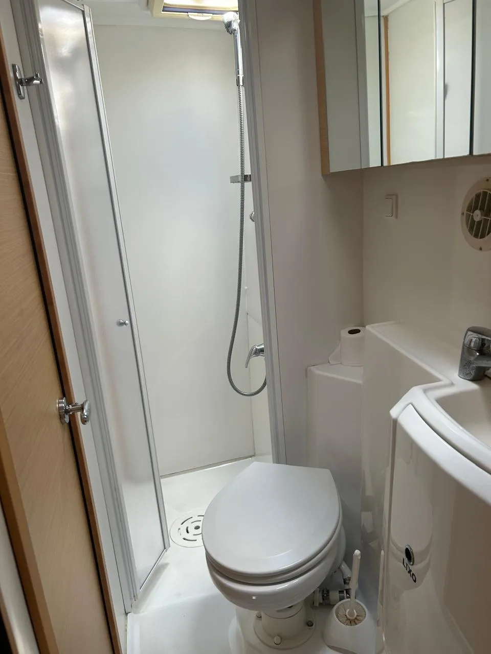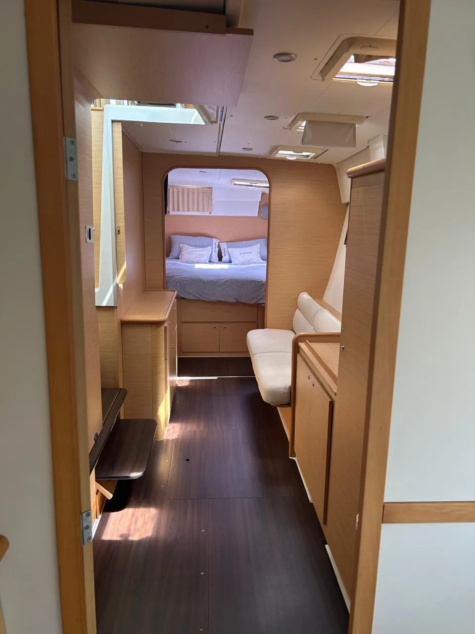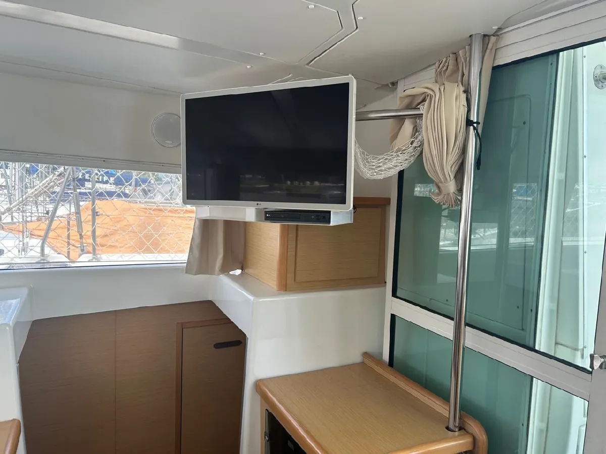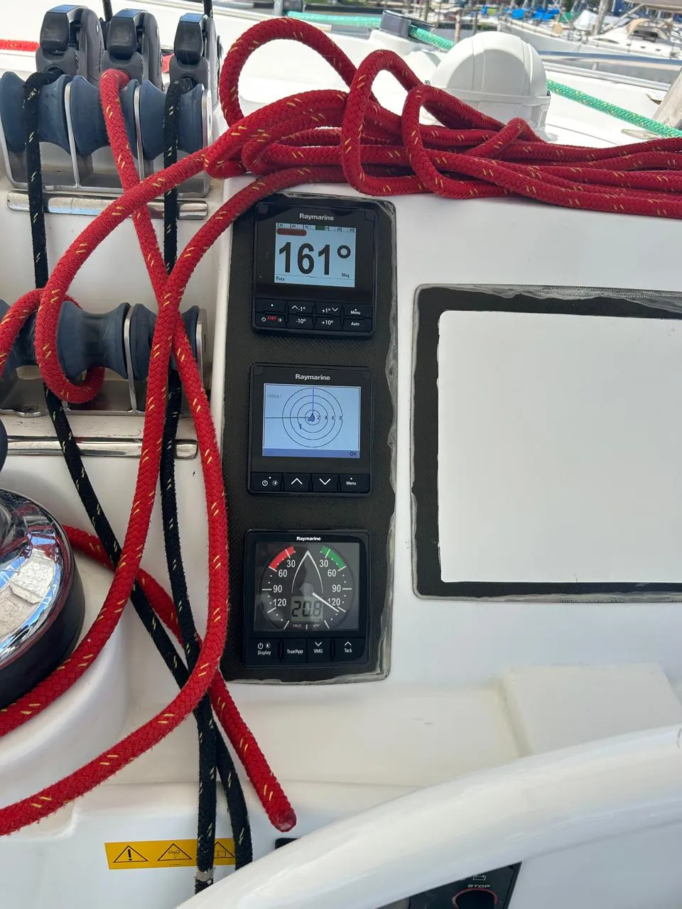 Ano: 2009 – Único dono 2 x Yanmar 40 Hp saildrive com 600 horas Gerador Kohler 8,5 KW com 1.250 h 4 Aparelhos de ar-condicionado Crusair 2 Placas solares Velas Mestra e Genoa novas Hood Instrumentos Raymarine GPS Plotter 7 pol. AIS Radar Bussola VHF com repetidor Bote inflável com motor de popa 15 hp Balsa auto inflável Catracas Harken sendo 1 eletrica Guincho elétrico 2 ancoras Geladeira Freezer Fogão TV Som Obs: o barco possui uma cabine de proa para marinheiro, e no bordo oposto um local para guarda e manutenção. Barco muito pouco usado grande parte em agua doce.