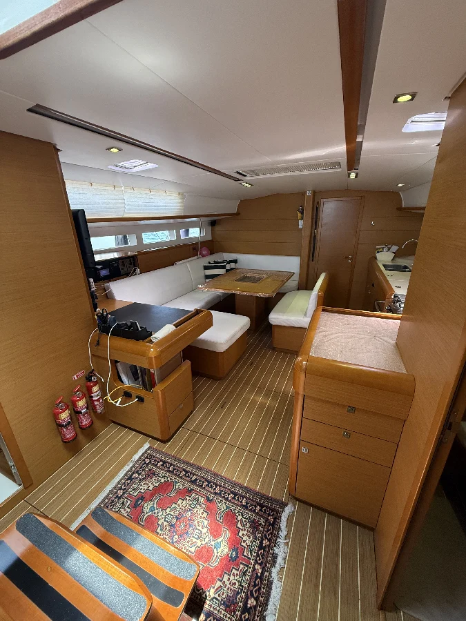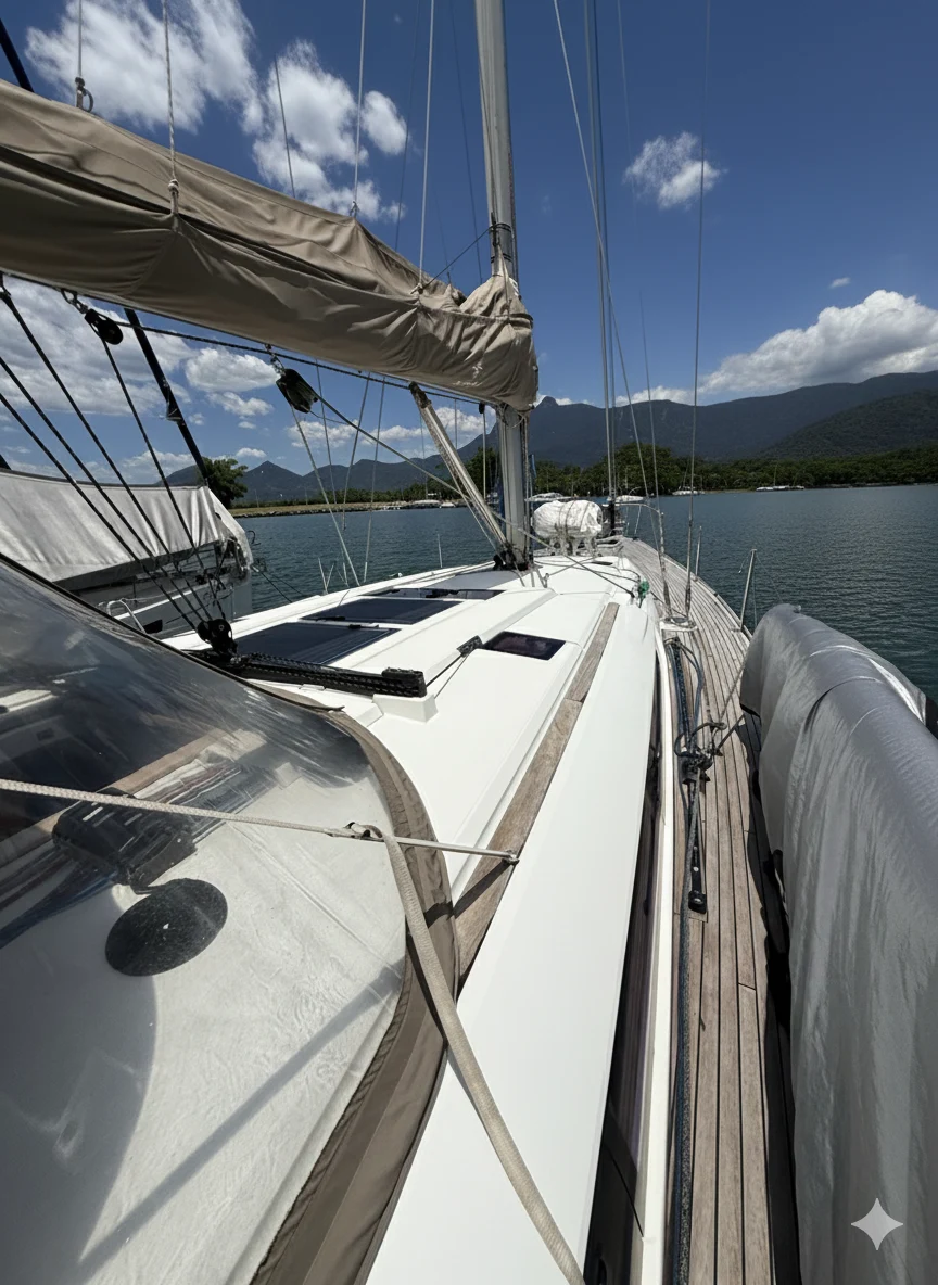 Modelo: Jeanneau Sun Odyssey 2013 Casco 53 – Ano fabricação 2012 Nacionalização: 2013 COZINHA Fogão 3 bocas e forno Micro-ondas Freezer Geladeira Geladeira portátil 12V/220V CABINE DO PROPRIETÁRIO A PROA Suíte com chuveiro com bomba a vácuo Vaso Elétrico Jabsco Quiet Flush Água quente Cama em Ilha Armários superiores em toda volta Armários guarda-roupa laterais Sapateiras Penteadeira Armário para manuais e salva-vidas Gavetões na Cama Persianas com Blackout e mosquiteiro nas 4 gaiutas Piso com dobradiças e amortecedores Carregador de celular Ventiladores Gaiutas pintadas e reformadas em agosto de 2025 Ar-condicionado 12.000 BTUs, máquina exclusiva, reformada em 2024. CABINE BELICHE A BORESTE Beliche superior / inferior Lona antiqueda nos beliches Armário Guarda roupa Armário Guarda trecos Depósito Ar-condicionado, máquina 18.000 BTUs compartilhada Carregador de celular Persianas com Blackout e mosquiteiro na gaiuta Ventilador CABINE DE POPA A BORESTE Cama Casal Queen Size Armário Guarda Roupa Estantes Espaço Porta trecos Carregador de celular Ar-condicionado, máquina 18.000 BTUs compartilhada Persianas com Blackout e mosquiteiro nas duas gaiutas SUÍTE DE POPA A BOMBORDO Suíte com chuveiro com bomba a vácuo Vaso Elétrico Jabsco Quiet Flush Água quente Cama Casal Queen Size Armário Guarda Roupa Estantes Espaço Porta trecos Carregador de celular Persianas com Blackout e mosquiteiro nas duas gaiutas Ar-condicionado, máquina 18.000 BTUs compartilhada SALÃO Televisão 32´ Rádio DVD Som integrado BOSE com Woofer Boser. Telefone IRIDIUM EXTREME com DOCKSTATION Mesa navegação completa Carregador torre de celular Inversor 1500W 12-220V Persianas com Blackout e mosquiteiro nas 4 gaiutas Ar-condicionado, máquina 14.000 BTUs, máquina exclusiva Pisos com dobradiças e amortecedores Carregadores de celular (2) INSTRUMENTOS SALÃO Radio VHF RS25 Chartplotter B&G Zeus 3S 9¨, comprado em 2024 AIS RADAR B&G (Desligado com defeito) EXTERNOS BORESTE AWD B&G, mostrador analógico direção do vento aparente Display B&G Triton 2, Display com estação de vento, profundidade e repetidor GPS Instrumentos com retrofit dos displays em novembro de 2022 Acionador de corrente EXTERNOS BOMBORDO AWD B&G, mostrador analógico direção do vento aparente Chartplotter B&G Zeus 8” com retrofit em 12/2022 COCKPIT Piloto automático B&G Todos os instrumentos com entrada NMEA2000, podendo ser ligados a outros de outras marcas e novas versões Mesa dobrável para 6 pessoas, com geladeira a gelo. Plataforma de popa elétrica Passarela popa-cais de aço inox MOTORES Motor YANMAR 75HP HJH4, bicos e bomba injetora trocados em novembro 2024 Gerador CUMMINS ONAM 7,5KVA Motor de popa 2T YAMAHA 3HP 2021, na garantia Rabeta YANMAR ST50 2021, recondicionada em maio de 2025 Todos revisados regularmente Bowthruster MAXPOWER CT125, com banco de 4 baterias, rabeta trocada em dezembro de 2025 VELAS Na proa temos um espaço para guarda de velas e equipamentos, onde é possível guardar defensas, bote desinflado, remos e os sacos do seguinte inventário de velas: Code Zero Genoa 90% Genoa 120% Storm Gennaker Balão CAPA DE PROTEÇÃO O barco fica coberto por uma capa de proteção que é presa na proa, passa por cima da retranca e vai até a popa cobrindo todo o cockpit. As velas de proa são retiradas e guardadas embaixo da capa. A proteção cobre: a capa da vela grande, Doghouse, Bimini, Stand-up. ESPECIFICAÇÕES GERAIS Convés e cockpit em TEKA, importada da Índia, com 6mm de espessura. Capacidade de água 840 litros Capacidade de Diesel 237 litros Tanque de água reserva 200 litros Tanques reserva de diesel 200 litros 70m de corrente de 10 mm Ancora Bruce de 40 kg Ancora reserva de 30 kg Capa para cobertura total do barco, refeita em 2022 Bote de apoio em fibra com flutuadores laterais Mastro e quilha performance. Timão duplo em fibra de carbono Placa solar no convés Catraca Elétrica para adriças Trilho para carrinho da Genoa 120% Trilho para carrinho da Genoa 90% Churrasqueira a carvão Stand-up rígido de fibra. Infláveis para crianças
